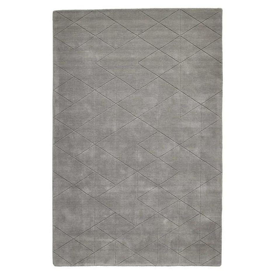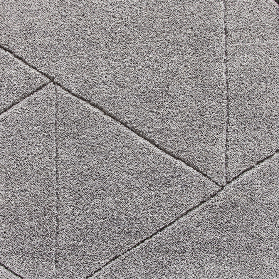 Kasbah KB2025 Modern Plain Geometric Hand-Carved Block Lines Wool Soft Mid Grey Rug