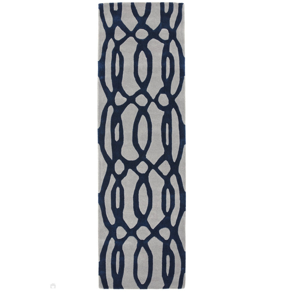 Introducing the Matrix MAX36 Modern Geometric Wire Soft Grey/Navy Blue Rug from the Matrix collection. This contemporary design showcases an intricate twisting wire pattern, rendered in a sophisticated blend of soft grey and deep navy blue. The interplay of light and dark tones creates striking contrast, making this rug a stylish focal point for modern living rooms, bedrooms, or office spaces.