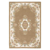 Royal Traditional Floral Aubusson Medallion Border Wool Rug in Beige. Bring a touch of classic sophistication to your home with the Royal Traditional Floral Aubusson Medallion Border Rug. Expertly hand-tufted from 100% pure wool in India, this rug combines traditional craftsmanship with timeless elegance, making it a perfect choice for vintage-inspired or classical décor.