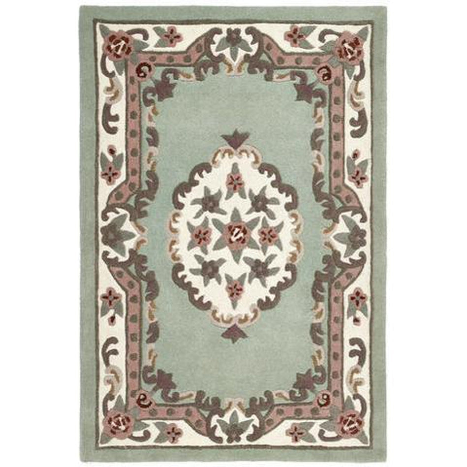 Shensi Traditional Floral Aubusson Green Rug. The Shensi range of traditional rugs offers timeless appeal, with its classic Aubusson-inspired floral medallion and ornate border detailing. Hand-tufted by expert rug makers from the finest 100% pure wool, this rug features a carved hi-low pile that enhances its textured design and adds depth. With its durable construction and elegant finish, it is a versatile choice that brings warmth and character to any room in the home.