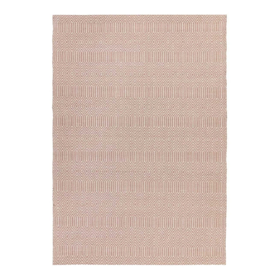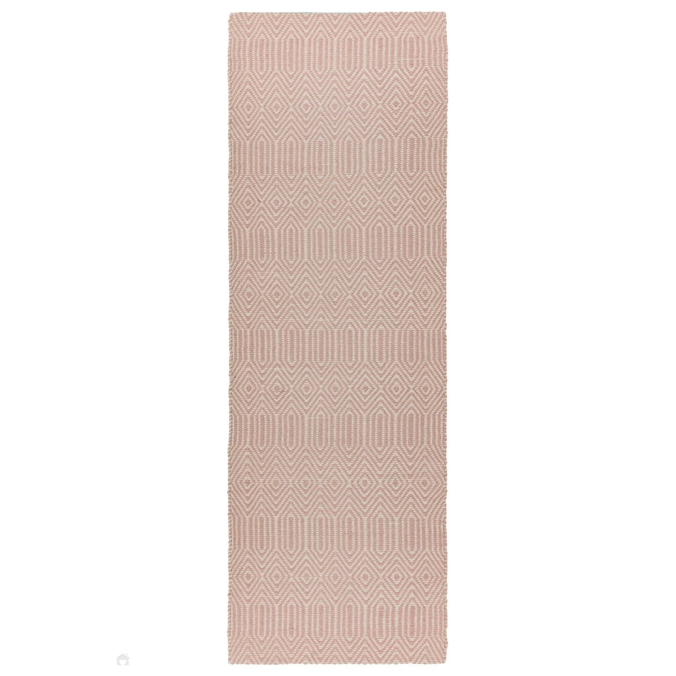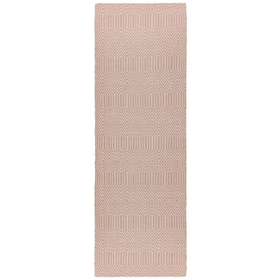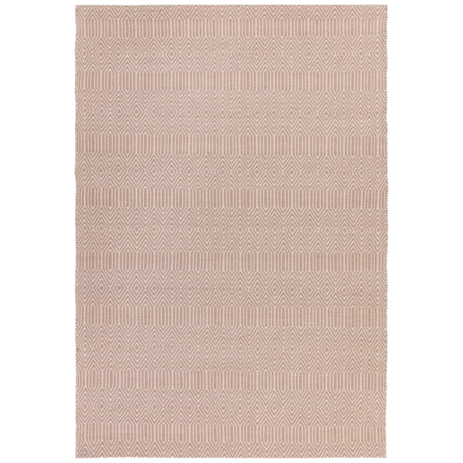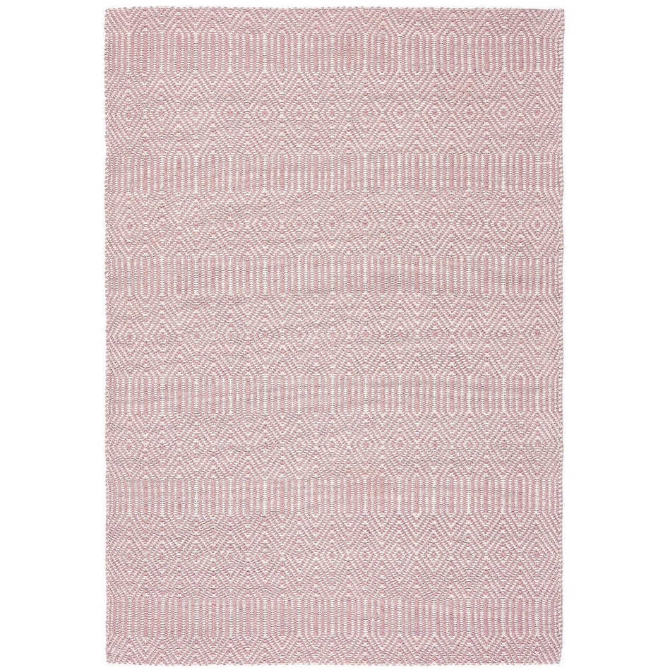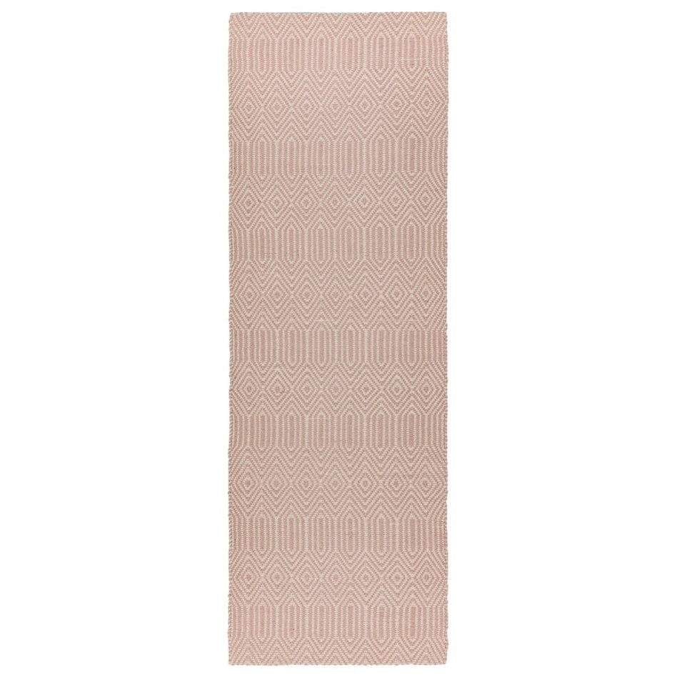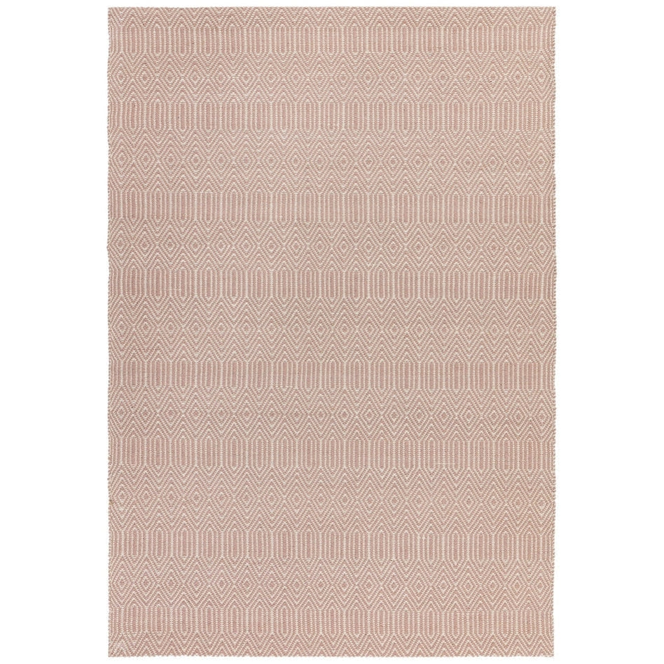 Its intricate geometric diamond pattern is woven in blush pink and soft ivory, forming an elegant, tactile surface with subtle tonal contrast. The flatweave structure gives it a smooth, refined texture, making it perfect for living rooms, dining areas, and bedrooms where a hint of colour and texture adds personality without overwhelming the space. Sloan draws inspiration from traditional hand-woven textiles, featuring rhythmic geometric motifs that echo ethnic and tribal design heritage redefined in modern geometric simplicity through clean lines and balanced symmetry for minimalist, Scandinavian, or urban interiors. Sloan brings effortless sophistication to contemporary living spaces.