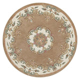 Royal Traditional Floral Aubusson Medallion Border Wool Round Rug in Beige. Bring a touch of classic sophistication to your home with the Royal Traditional Floral Aubusson Medallion Border Rug. Expertly hand-tufted from 100% pure wool in India, this rug combines traditional craftsmanship with timeless elegance, making it a perfect choice for vintage-inspired or classical décor.