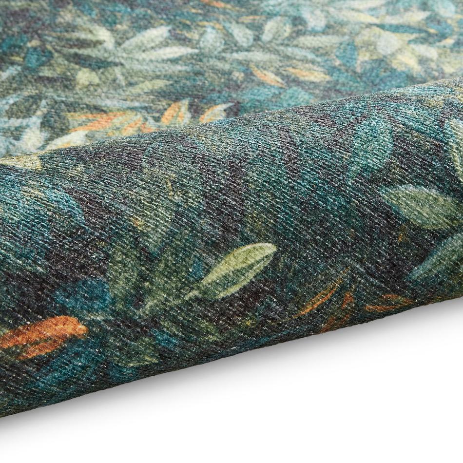 The Clarke & Clarke Congo Jungle Washable Rug is a bold celebration of nature, featuring tonal layers of Teal, Emerald, Amber, and Moss Green in a richly detailed botanical design. Its painterly pattern captures the spirit of the tropics while maintaining a sense of modern sophistication.