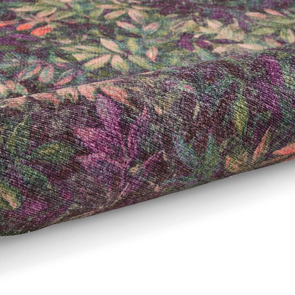 Washable Clarke & Clarke Congo Mulberry Modern Floral Botanical Textured Lightweight Printed Recycled Polyester Flatweave Mulberry Purple/Emerald/Forest/Blush Rug