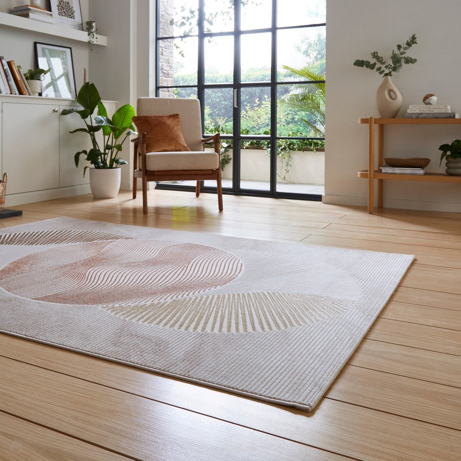 The Creation 50097 Modern Venn Rug – Bronze/Beige features a low-profile 0.8 cm short pile and a multi-textured high-density weave, offering the perfect blend of softness, durability, and refined style. Made from a polypropylene and polyester blend, it ensures long-lasting quality and easy maintenance while delivering a tactile, layered aesthetic. The interplay of Bronze, Beige, Warm Taupe, Ivory, Golden Ochre, and Deep Brown tones creates a metallic shimmer and sophisticated depth that complements modern living rooms, bedrooms, and contemporary interiors.