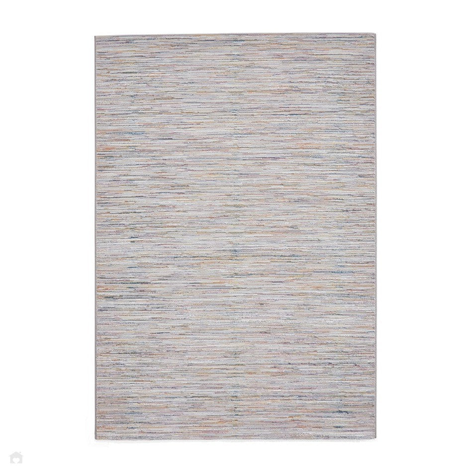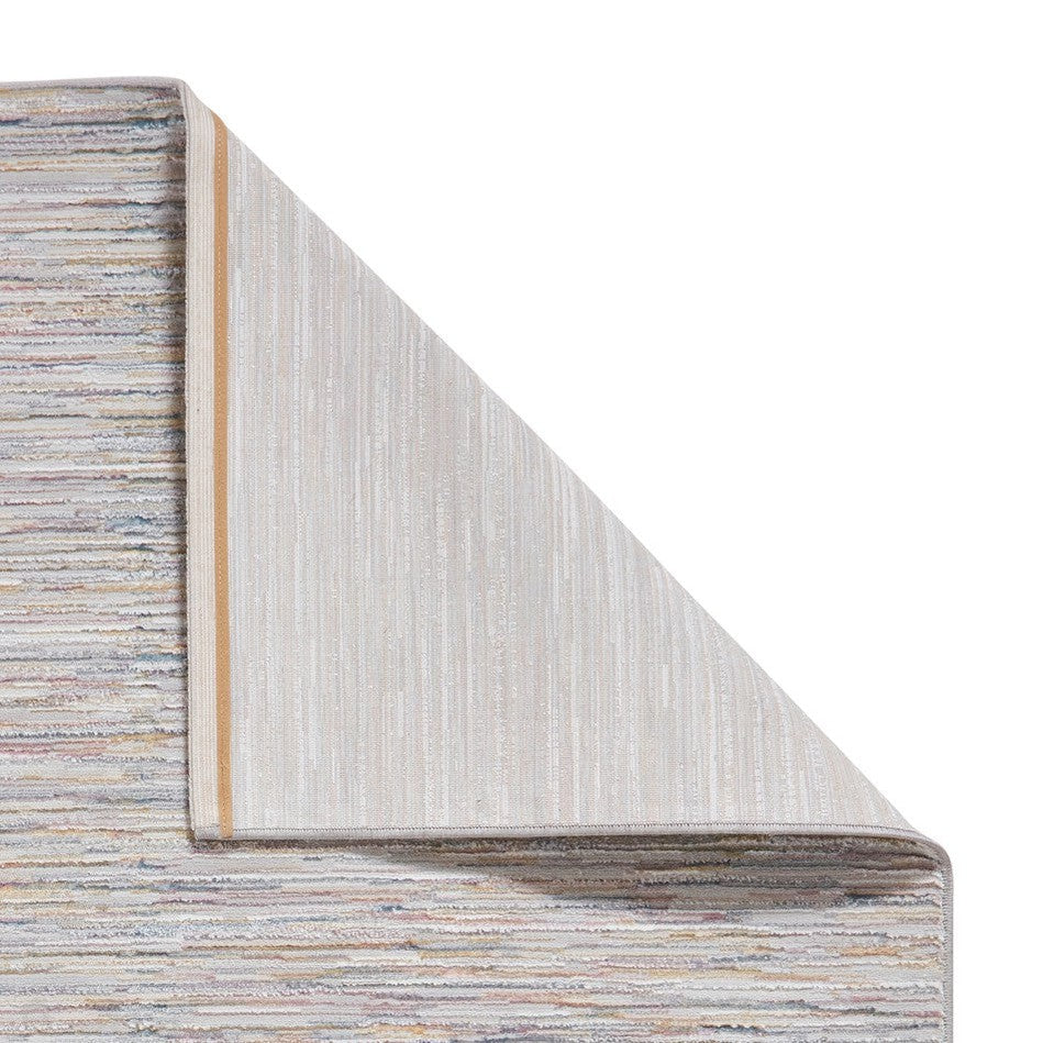 The banded linear design showcases a subtle interplay of tones that blend seamlessly together, creating a beautifully balanced and understated look. The mix of Soft Pink and Muted Blue accents adds a gentle vibrancy, while the neutral Beige and Pale Grey base grounds the design with contemporary sophistication. This versatile piece enhances any interior with warmth, texture, and effortless elegance.
