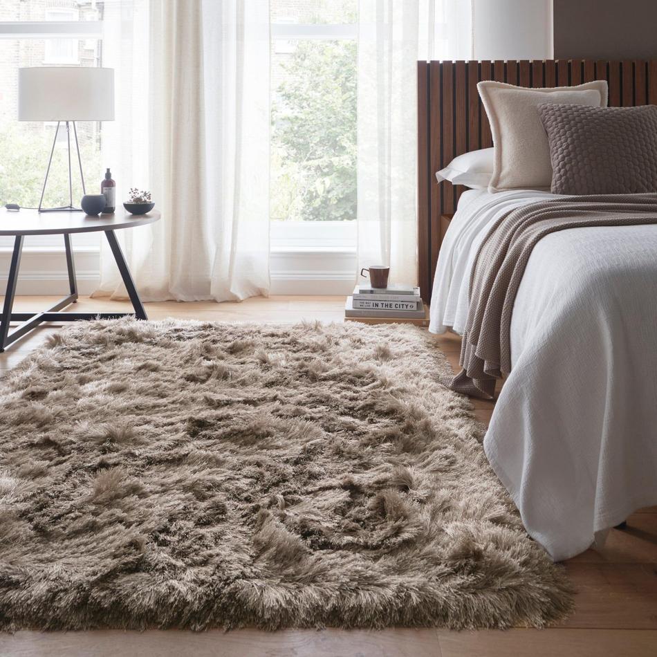 Introducing the Glamour Deluxe Champagne Rug – an elegant, light-reflective shaggy rug woven from exceptionally fine, silky polyester yarns. Designed to bring subtle luxury and warmth to any room, this piece glows with a soft champagne sheen that shifts beautifully under changing light. Its flowing texture and gentle lustre create a refined, tranquil aesthetic that complements both contemporary and classic interiors.