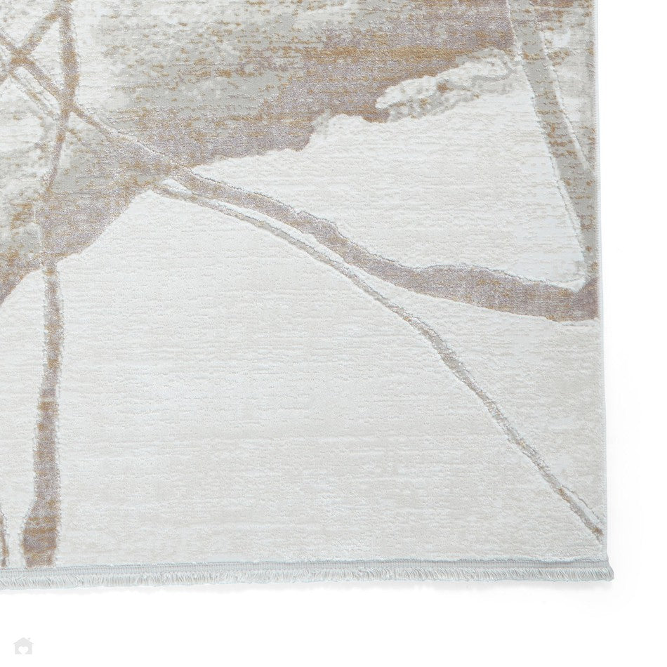 The Mirage MR26 Rug presents a bold, artistic take on modern interior design, featuring a distressed abstract pattern with sweeping brushstroke-like lines and organic marbled textures. The soft Cream and Beige palette is enriched with subtle Soft Taupe accents, creating a layered visual depth that feels elegant yet contemporary. The metallic shimmer woven into the fibres catches the light beautifully, elevating the design and adding a touch of understated luxury. Crafted from a premium polyester-viscose blend, this rug boasts a short 0.7 cm low-profile pile that is soft underfoot yet easy to maintain. The high-density construction ensures shape retention and durability, making this piece perfect for living rooms, bedrooms, or open-plan spaces where style and function go hand in hand.