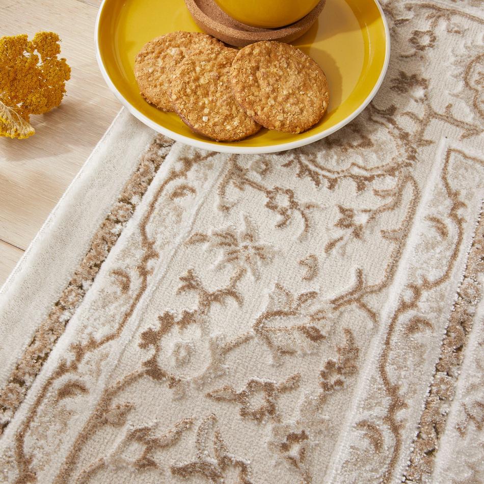 The Olivia OLI104 Grey/Khaki Rug combines Warm Khaki Beige, Soft Cream, Taupe, Pale Stone Grey, Champagne Gold, and Ivory tones within a finely detailed, Persian-inspired motif. Crafted in Turkey with precision machine weaving and a latex backing, this rug is durable, non-shedding, and easy to maintain. Its neutral tones and intricate design make it ideal for living rooms, bedrooms, and elegant modern-classic interiors.