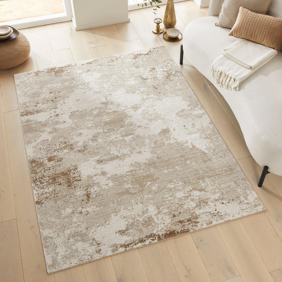 The Olivia OLI106 Beige Rug combines Warm Beige, Ivory Cream, Soft Taupe, Stone Grey, and Champagne Gold in a beautifully balanced abstract composition. Its short 8 mm pile features a silky, textured surface that catches the light with a delicate sheen, enhancing the luxurious feel underfoot. Made from 100% polyester and machine-woven in Turkey, it offers exceptional softness, no shedding, and easy-care practicality—ideal for living rooms, bedrooms, and open-plan spaces seeking a serene, modern aesthetic.
