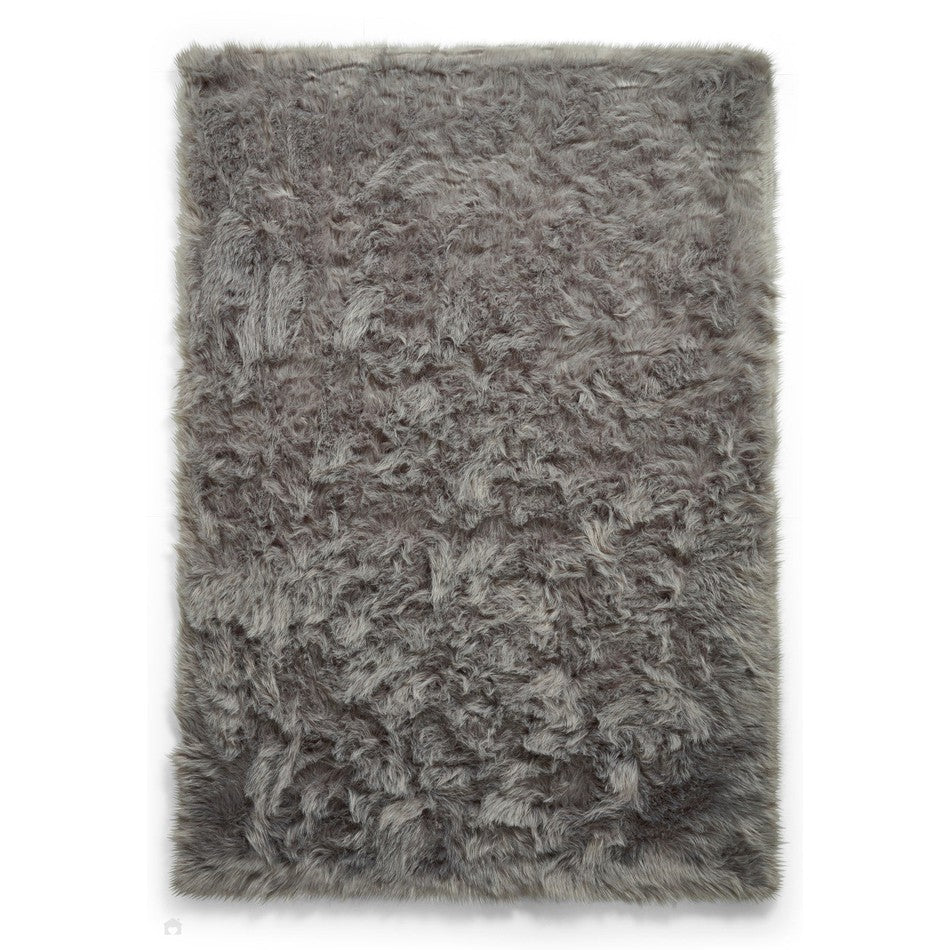 Polar Plush Plain Super Soft Fluffy Faux Fur Feel Textured Ultra Fine Yarn Acrylic Hand-Tufted Wispy Long Strand Shaggy Grey Rug