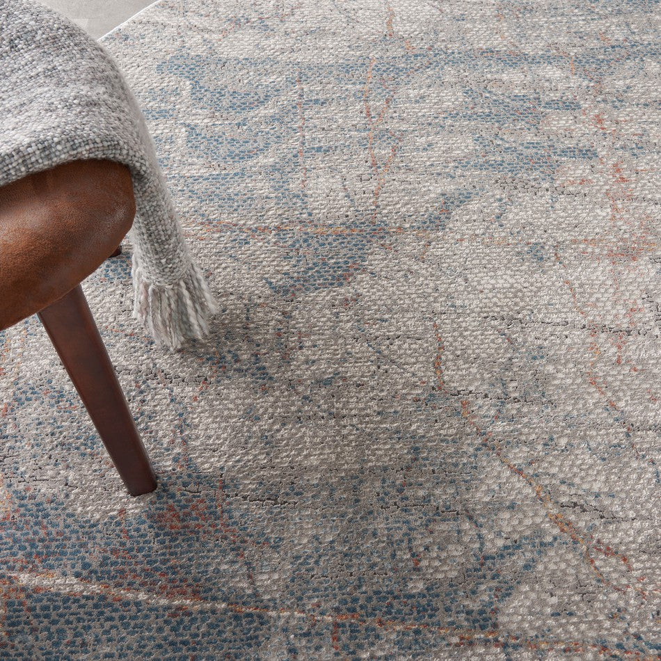 The Rustic Textures RUS15 Light Grey/Blue/Ivory/Rust/Beige Rug combines modern abstract artistry with a soft, distressed texture, creating a look that’s both sophisticated and subtly weathered. Crafted in Turkey from a premium 51% polypropylene and 49% polyester blend, it features a 10 mm hi-low carved short pile that adds tactile depth and a gently shimmering surface. The layered tonal design blends cool greys and blues with warm beige and faint rust streaks, resulting in a balanced, organic aesthetic that complements a wide variety of contemporary and transitional interiors.