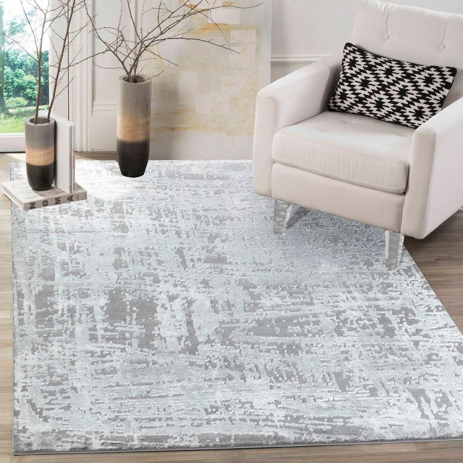 Serenity 205 SRN05 Modern Abstract Subtle Linear Painterly Grid Distressed Metallic Shimmer Soft Textured Hi-Lo Polyblend Short Pile Cool Grey/Steel Grey/Soft Silver/Charcoal/Ivory Rug