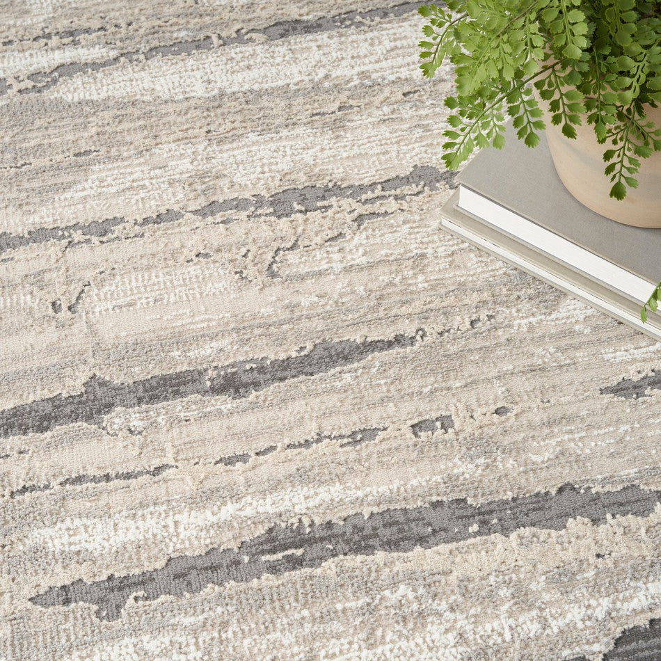 Ash Grey – Subtly layered in textured bands, creating a smoky, stone-like effect that lends the rug a natural, organic appearance.