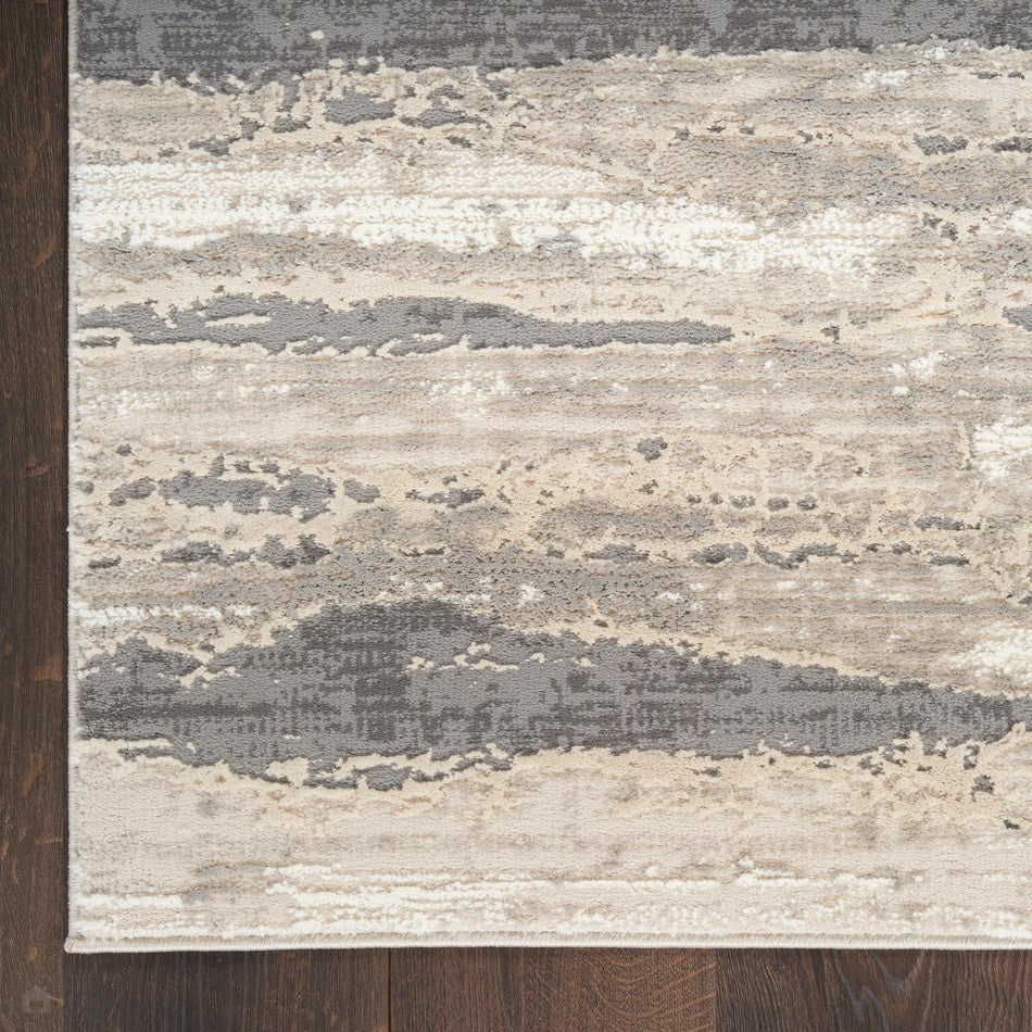 The Sustainable Trends SUT03 Taupe Beige/Ivory Rug presents a soothing composition of Taupe Beige, Ivory, and Ash Grey, elegantly layered with Charcoal, Pewter, and Warm Sand accents. The abstract, striated design mimics the natural beauty of sedimentary stone formations, enhanced by subtle tonal shifts and a tactile, hi-low surface.