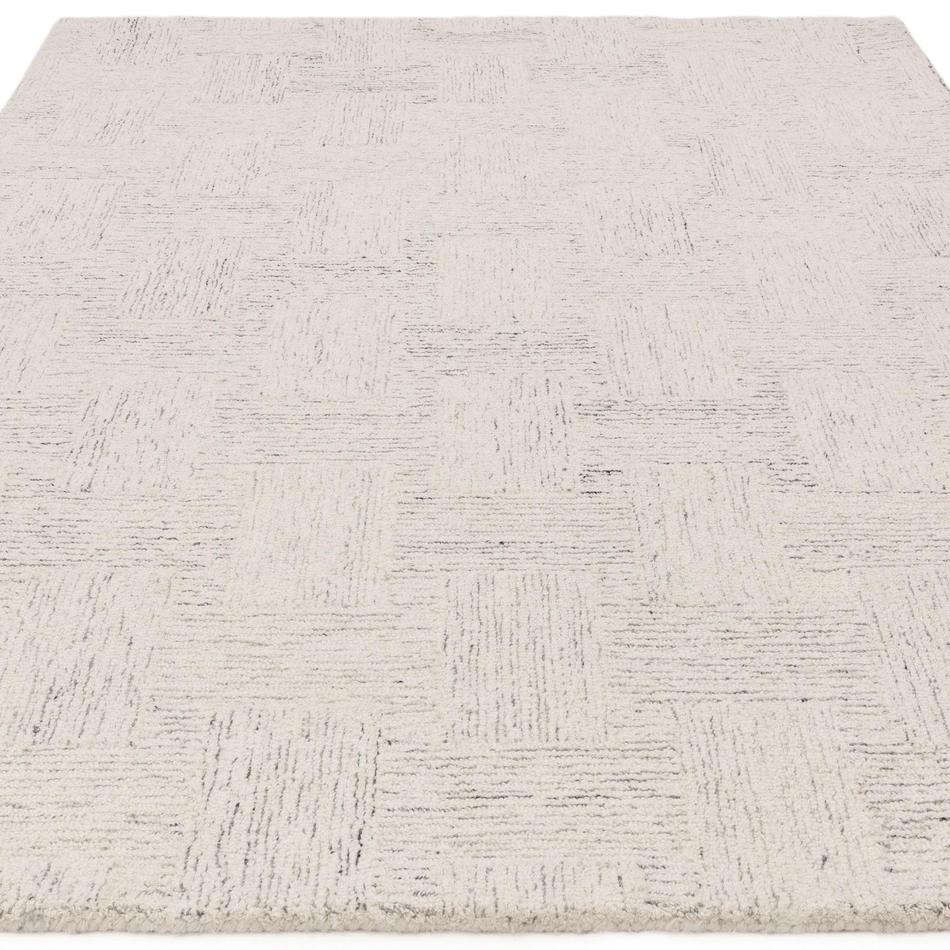 The Theodore Hatch White/Black Wool Rug combines hand-tufted craftsmanship with a textured 10mm loop pile and subtle cross-hatch design, resulting in a look that is both timeless and contemporary. Made from 100% wool, it delivers warmth, softness, and durability with a naturally resilient feel underfoot. The interplay of White, Soft Black, and Warm Cream tones adds refined depth and balance, making this rug a versatile choice for modern living rooms, monochrome interiors, and minimalistic décor schemes.