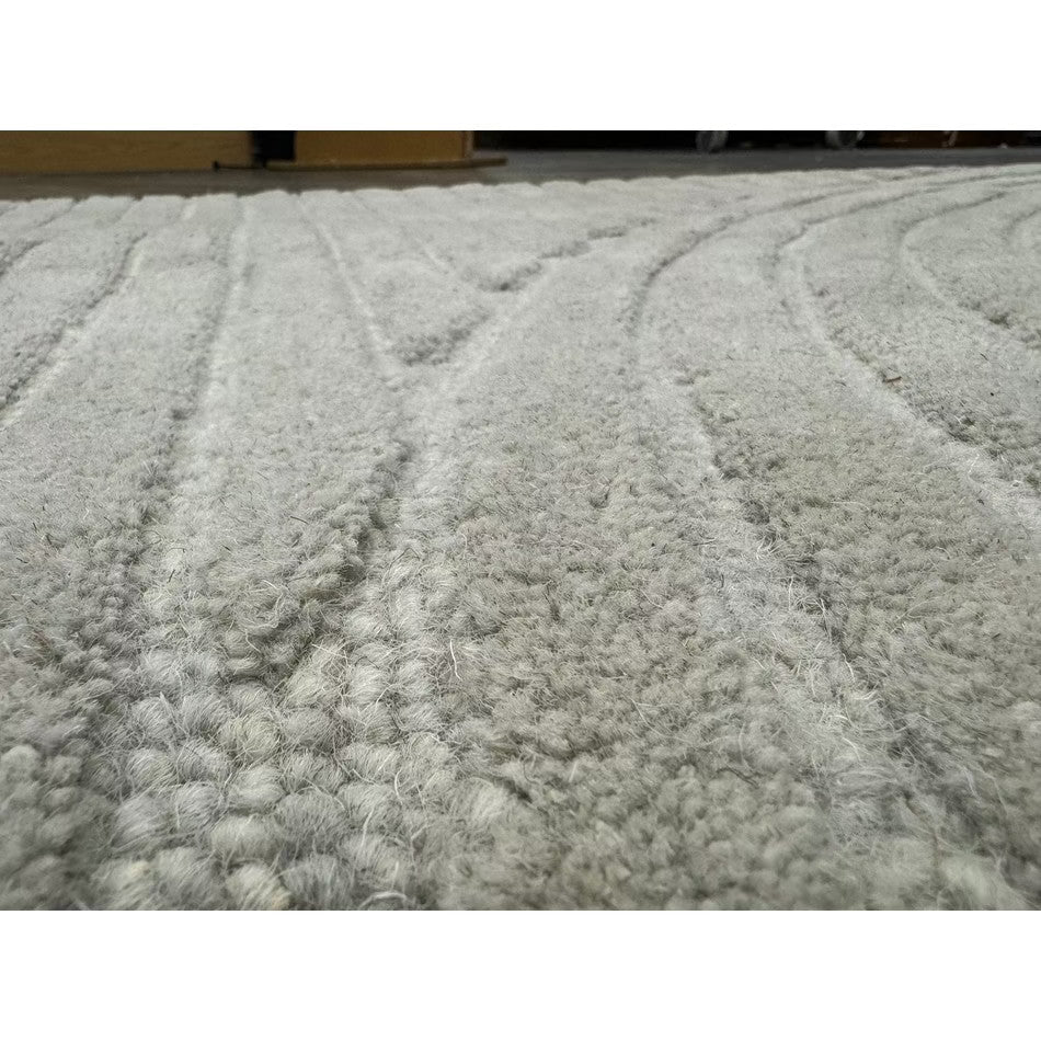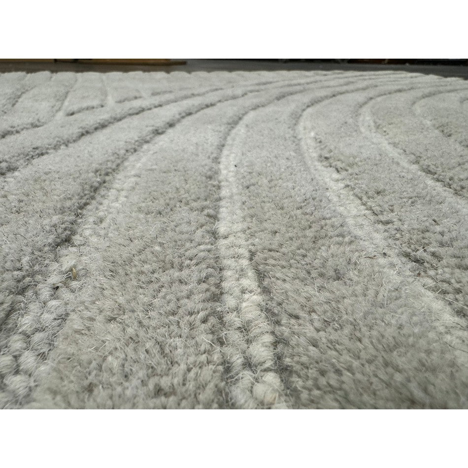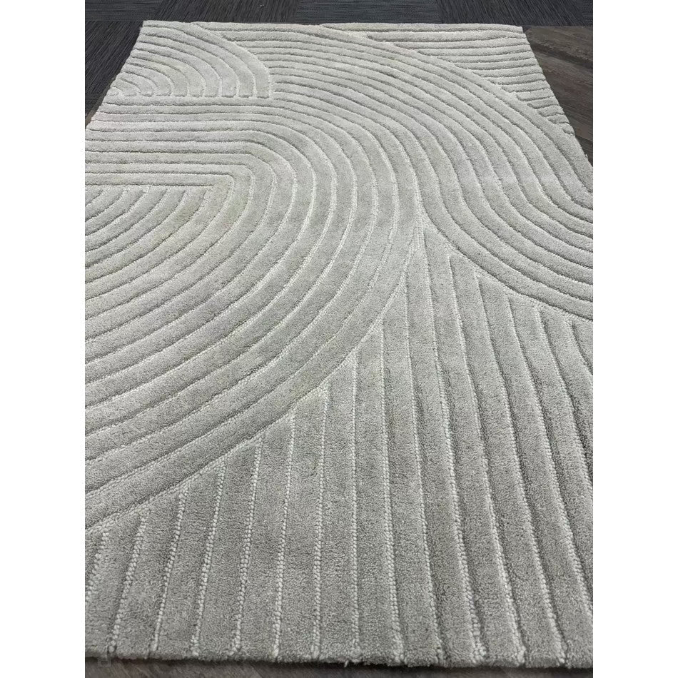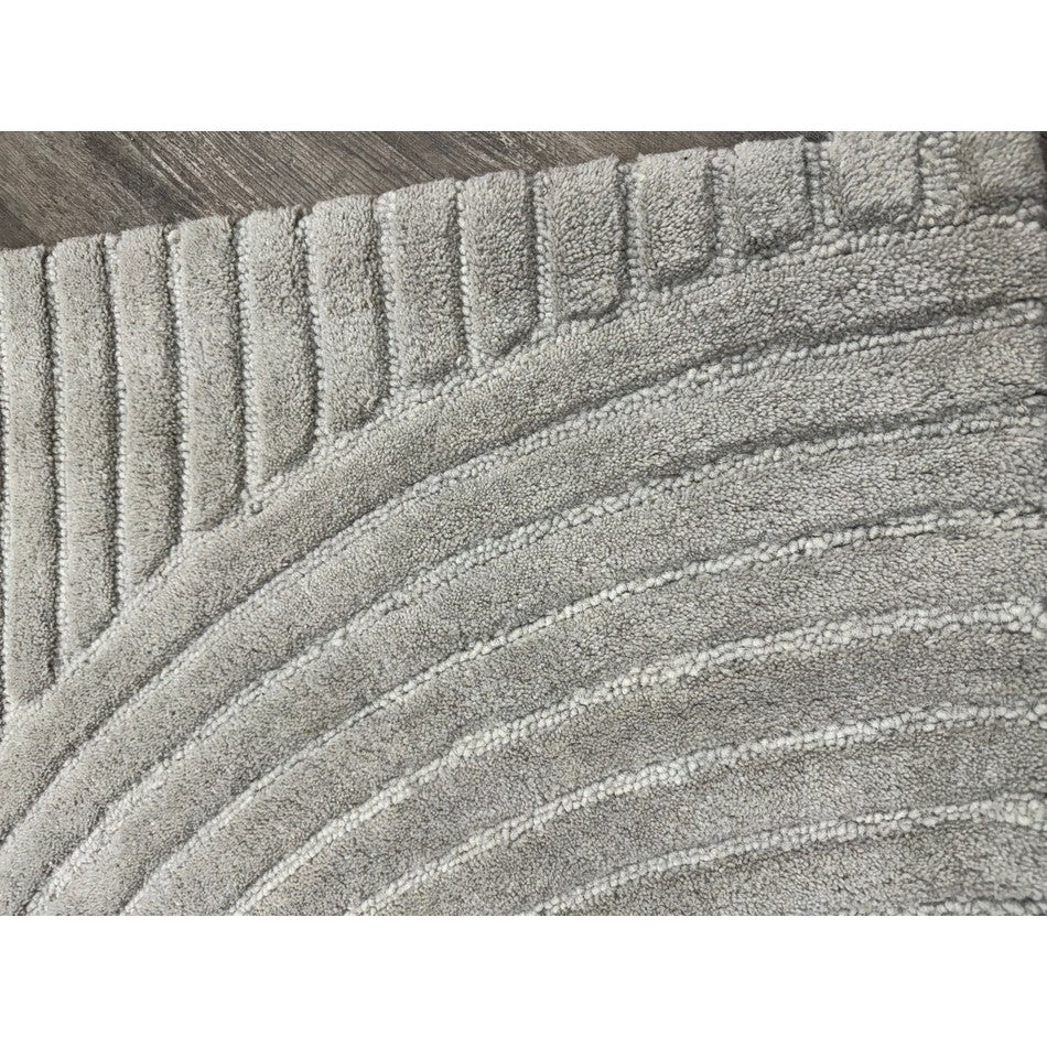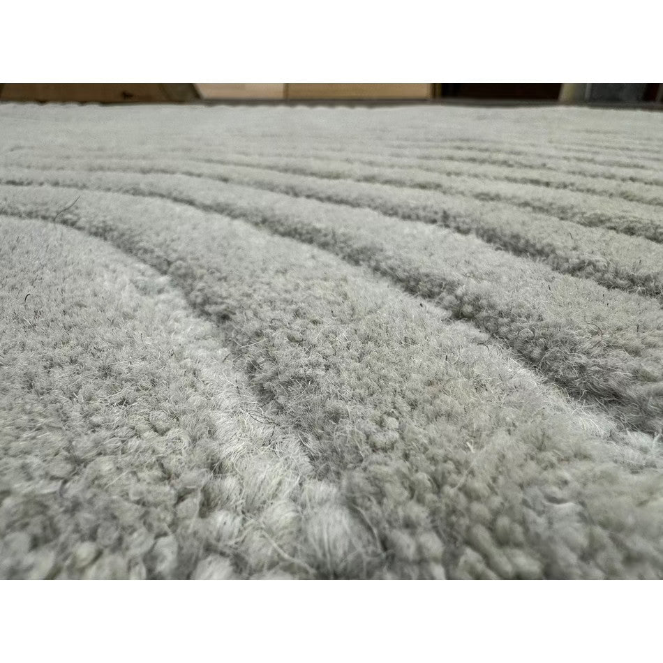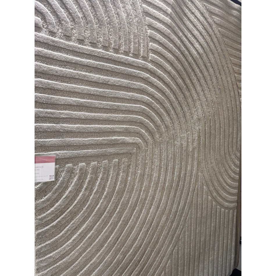 The Hague Modern Plain Geometric Wool Rug in Stone Grey delivers a beautifully balanced blend of modern sculptural design and tactile softness. Defined by its 3D hand-carved geometric pattern, the curved and linear ridges create architectural depth and a sense of movement across the surface. The loop pile base forms the foundation of the design, while the cut pile detailing introduces a contrasting raised texture, resulting in a luxurious hi-low finish that subtly catches the light.