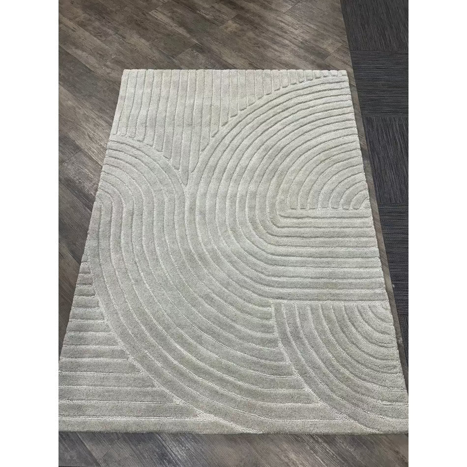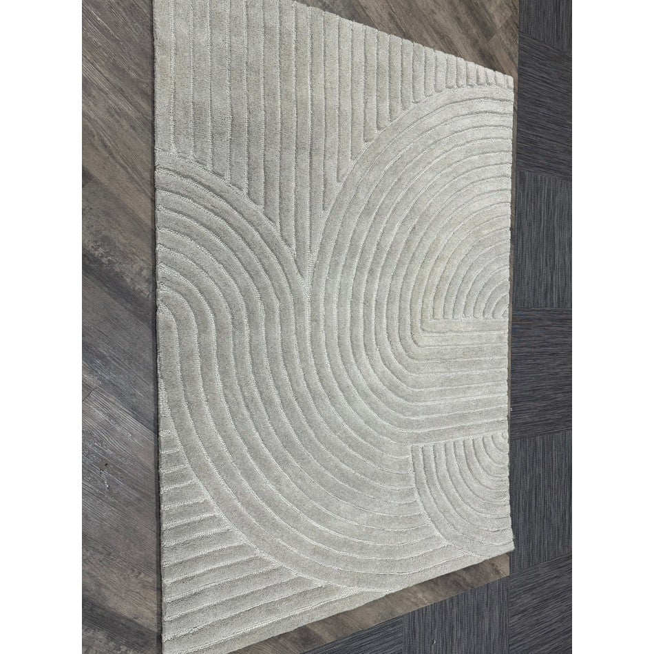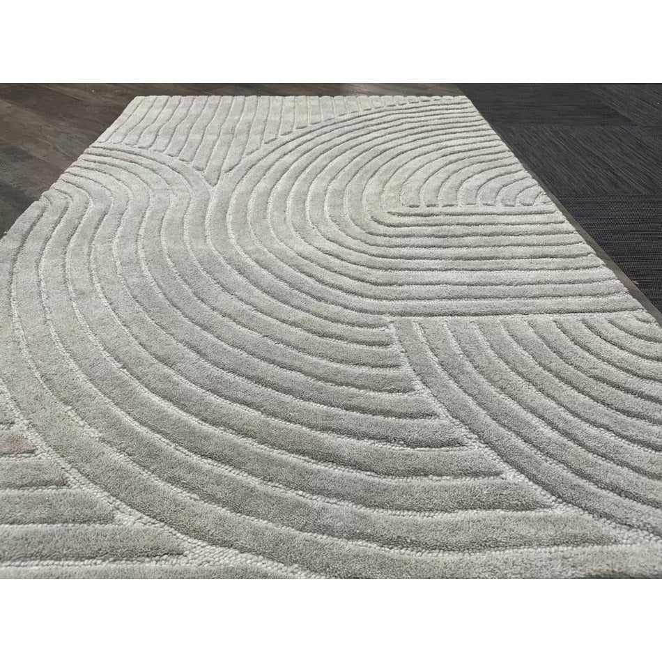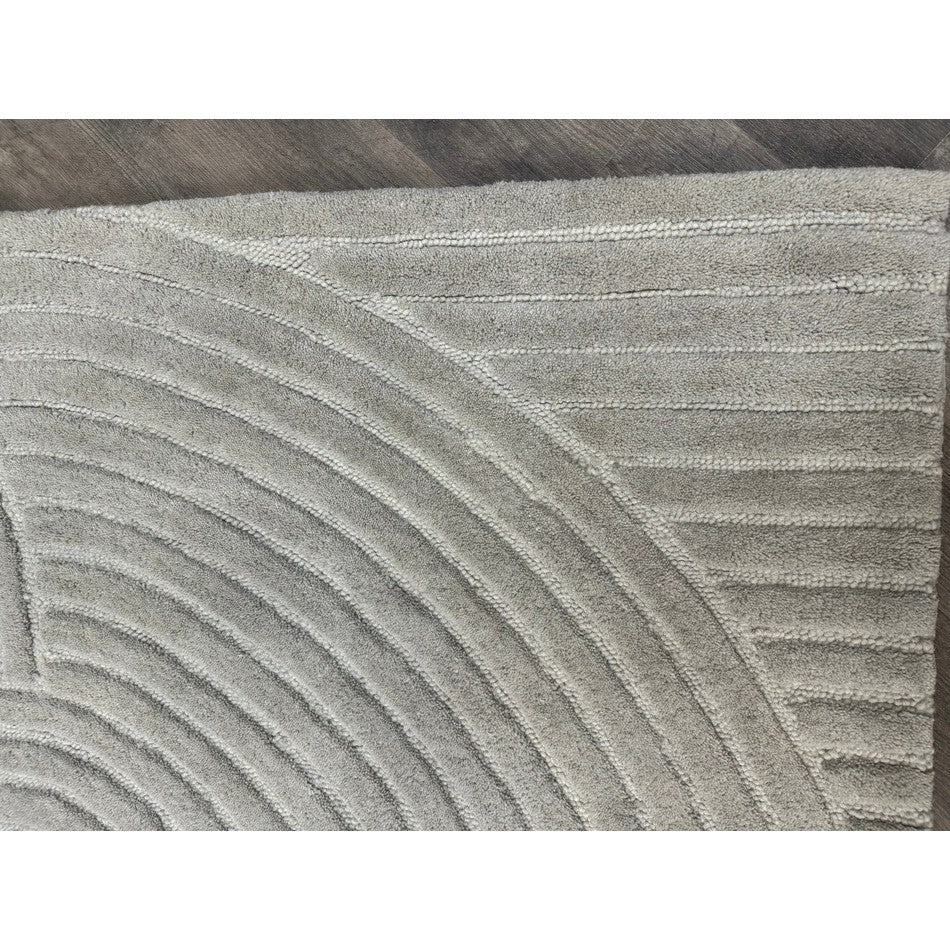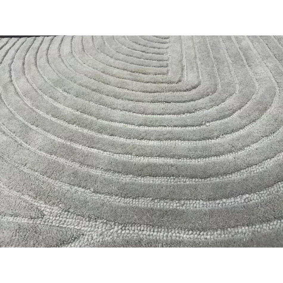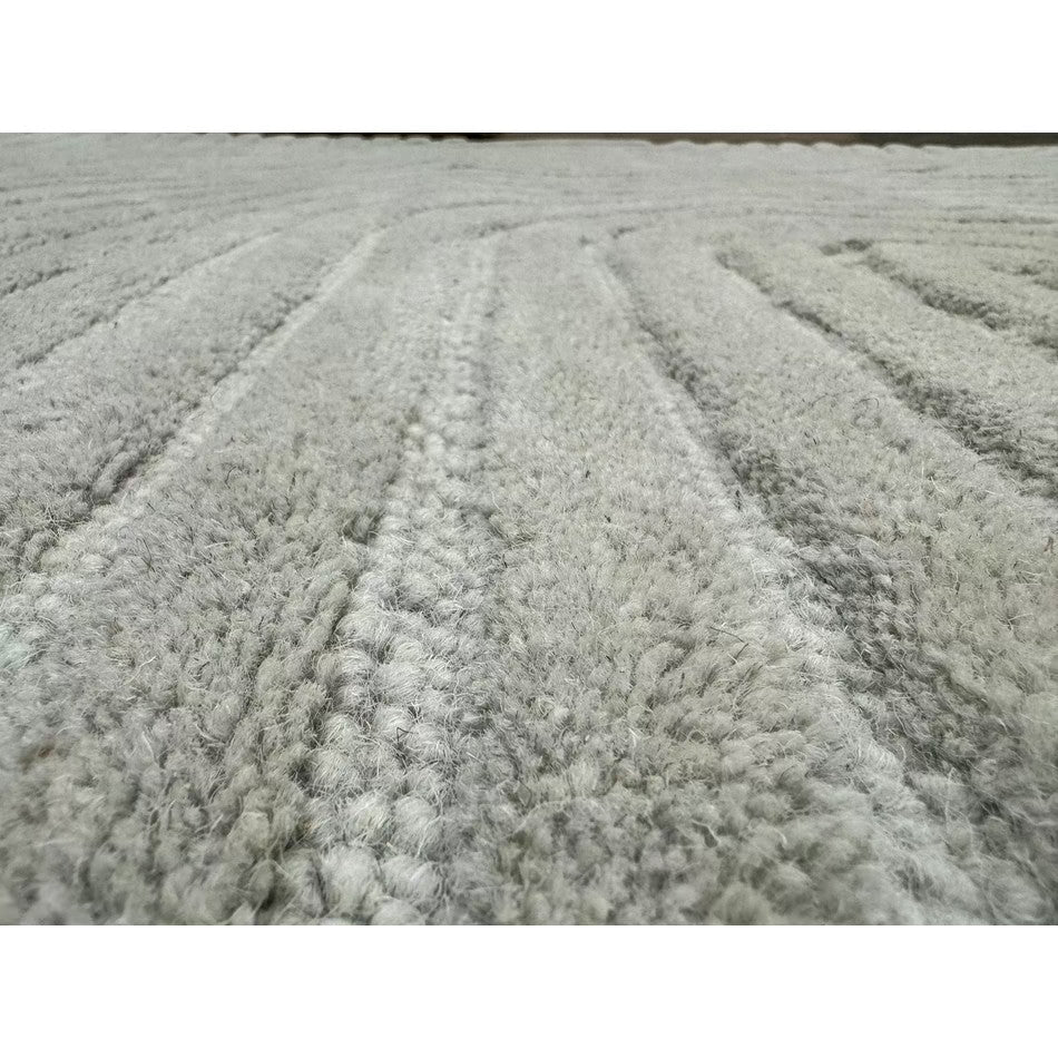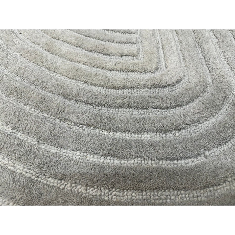 The Hague Modern Plain Geometric Wool Rug in Stone Grey delivers a beautifully balanced blend of modern sculptural design and tactile softness. Defined by its 3D hand-carved geometric pattern, the curved and linear ridges create architectural depth and a sense of movement across the surface. The loop pile base forms the foundation of the design, while the cut pile detailing introduces a contrasting raised texture, resulting in a luxurious hi-low finish that subtly catches the light.