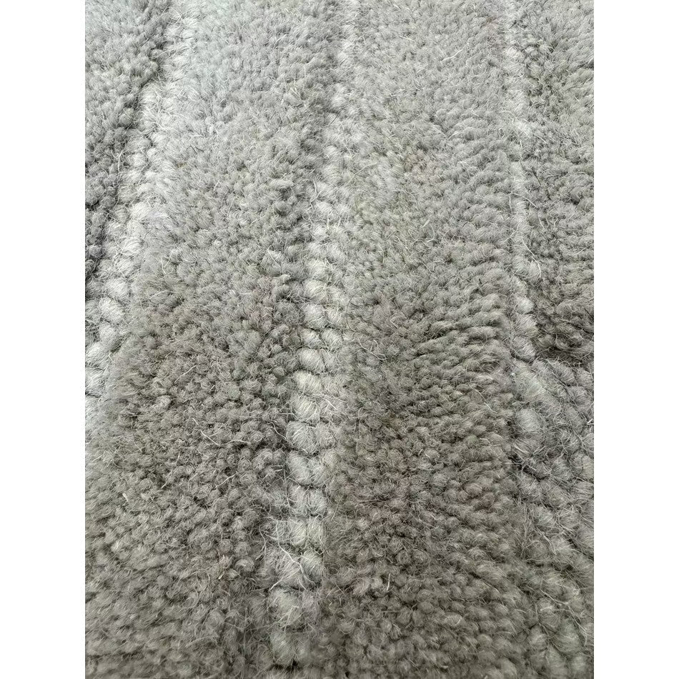 Each rug is handmade in India using 100% pure wool, combining artisanal craftsmanship with modern precision. The 10–14mm pile height ensures a comfortable, cushioned feel underfoot, while the cotton and latex backing provides stability and strength. The Muted Grey tone is a soft, contemporary neutral — a refined blend of cool silver and gentle dove-grey undertones — perfect for modern minimalist interiors or monochrome spaces seeking warmth and balance.