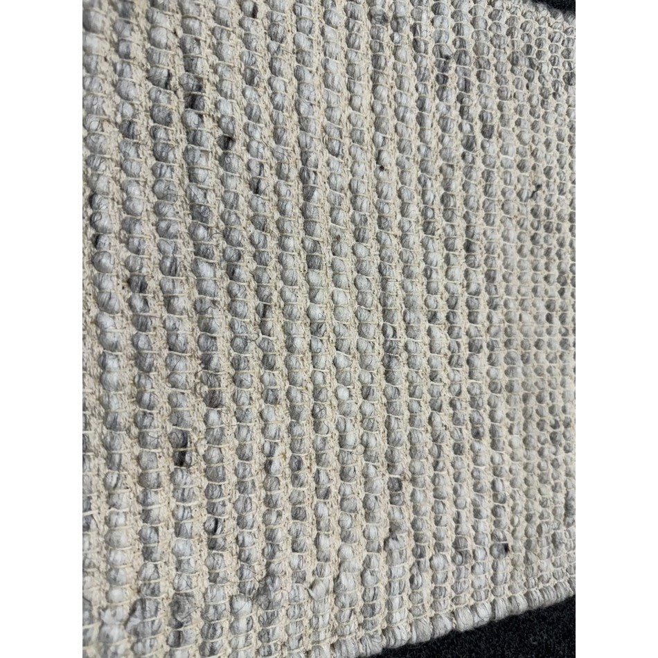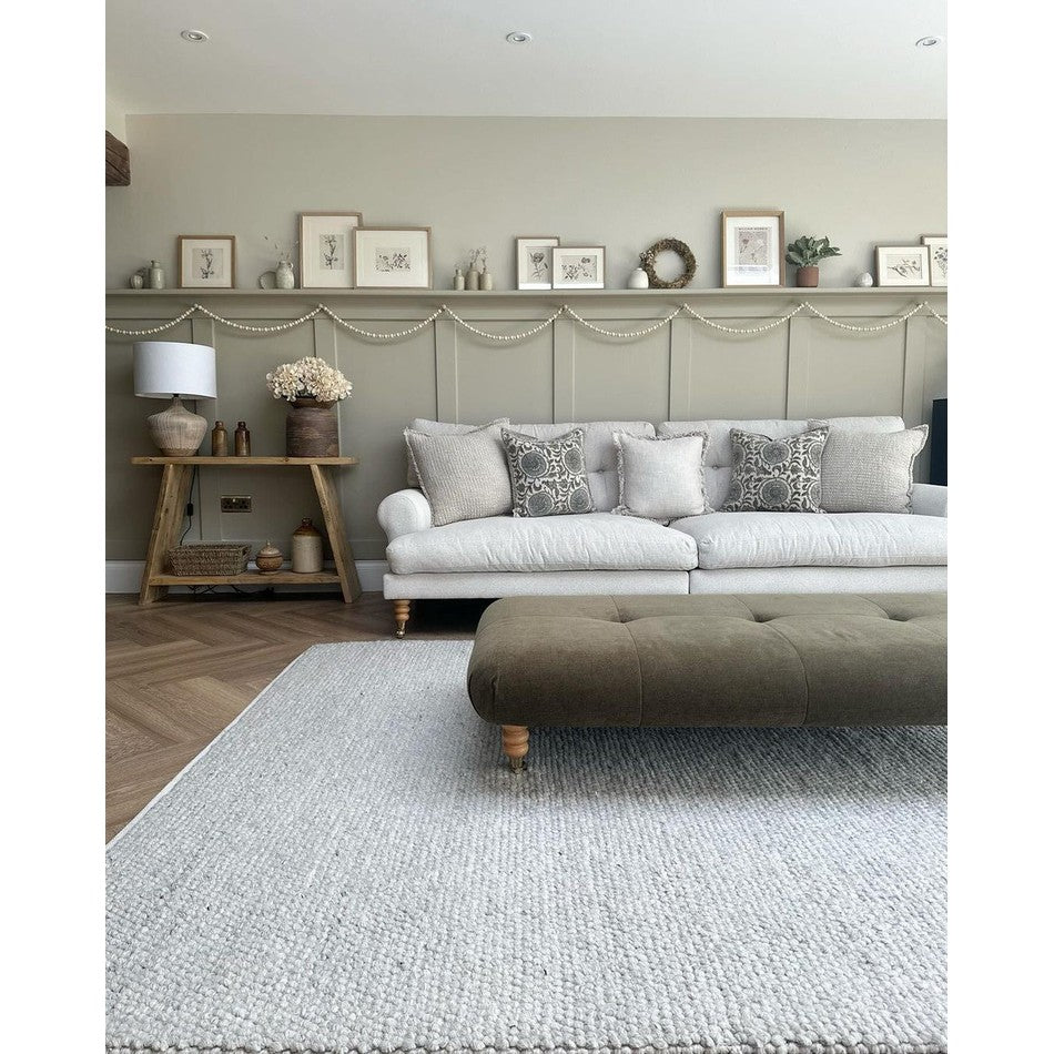The neutral colour palette of silver charcoal grey and ivory creates a calming foundation, perfect for complementing both minimalist and coastal-inspired interiors. Its unique pebble-like beaded weave adds a tactile element that makes it as inviting to walk on as it is to look at.