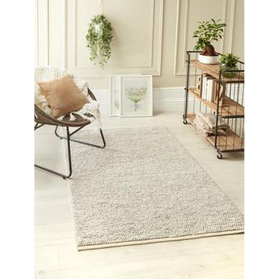 Introducing the La Playa Woven Mottled Beaded Pebble Wool Rug in Silver Charcoal Grey/Ivory – the perfect way to add a touch of relaxed, beach-inspired elegance to your home. Expertly handwoven from a soft yet durable blend of wool and polyester, this rug combines natural texture with a modern, mottled finish that brings subtle depth to your space.