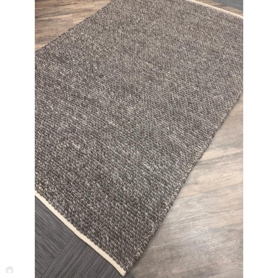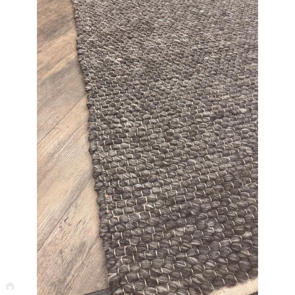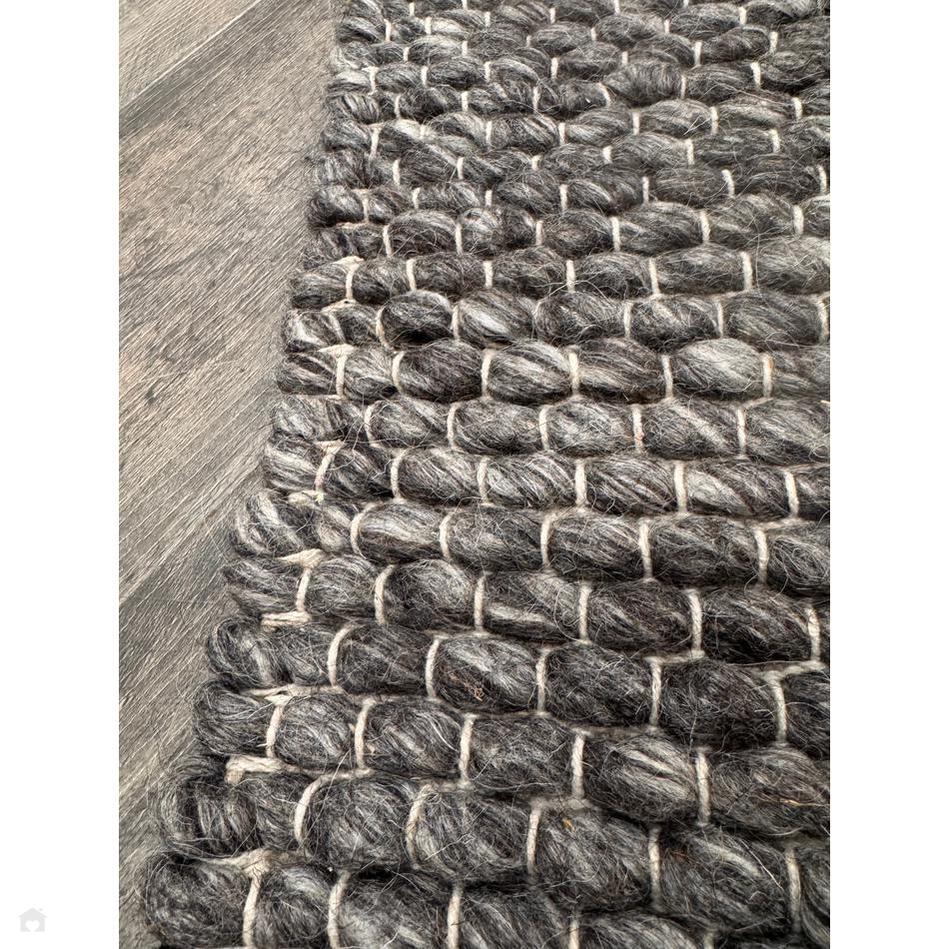 The Savannah Modern Plain Charcoal Rug brings rich depth and texture to your space, hand-woven in India from 100% wool using chunky felted yarns. Its bold Charcoal Grey base is elevated by subtle blends of Ash Grey, Stone Grey, and delicate touches of Ivory, creating a visually interesting pebble-like surface. The 1.1 cm flatweave pile and heavyweight 2.7 kg/m² construction offer warmth, softness, and a naturally insulating feel underfoot, making it perfect for living rooms, dining areas, and bedrooms where a deeper tone is desired. Savannah features a soft, blanket-like construction.