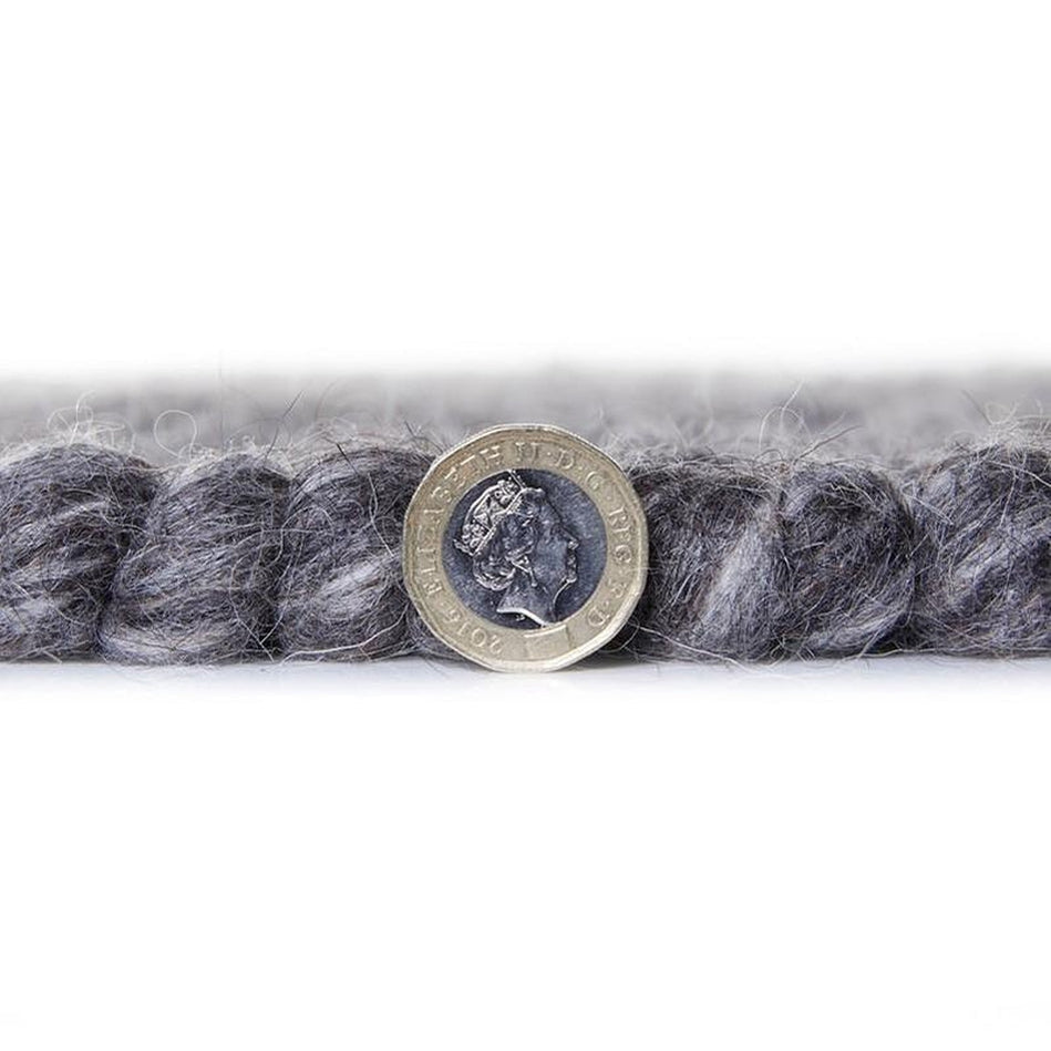 Please note: due to the felted wool yarn construction is particularly susceptible to shrinking when exposed to heat, hot water, or excessive agitation. Over time, the surface of the felt can also develop fuzz or small pills, which can be gently removed with a fabric comb. For a more hardwearing and low-maintenance alternative, we recommend our La Playa or Zander range, which offers a similar neutral aesthetic in a more durable fibre blend