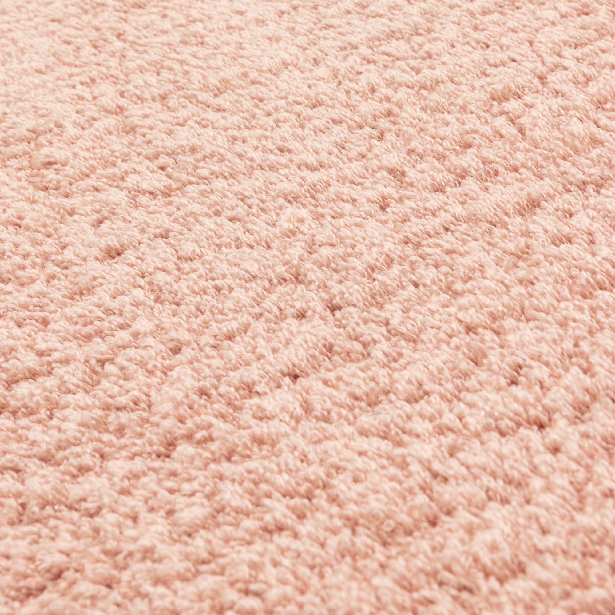 Blush Pink – A gentle and refined pink tone with subtle peach and champagne undertones, creating a soft, romantic warmth. The shimmering microfibre yarn enhances its depth, allowing the colour to transition gracefully between Powder Blush and Rose Quartz as light plays across the pile, adding a luxurious glow to the plain shaggy texture.