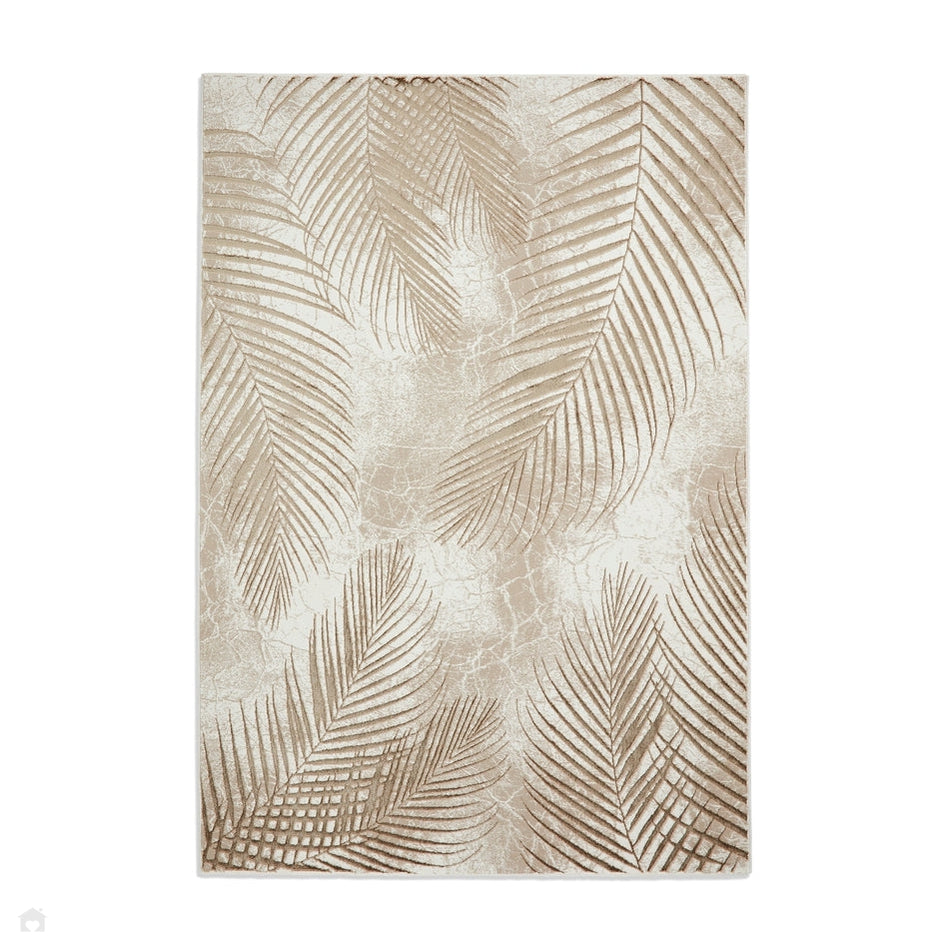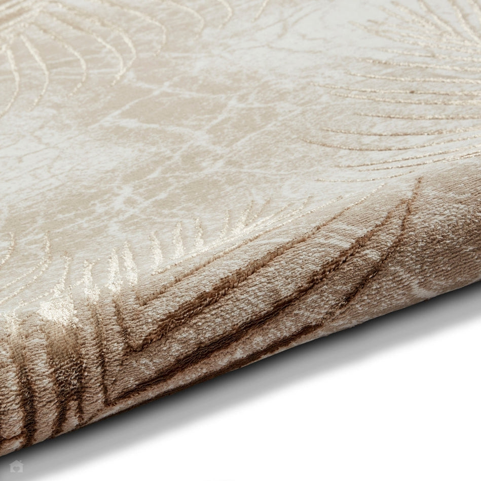 The rug’s botanical palm-inspired pattern shimmers subtly under the light, adding texture and movement to contemporary interiors. The harmonious fusion of Beige and Bronze tones enhances the natural warmth of your décor, creating a sophisticated and calming atmosphere.