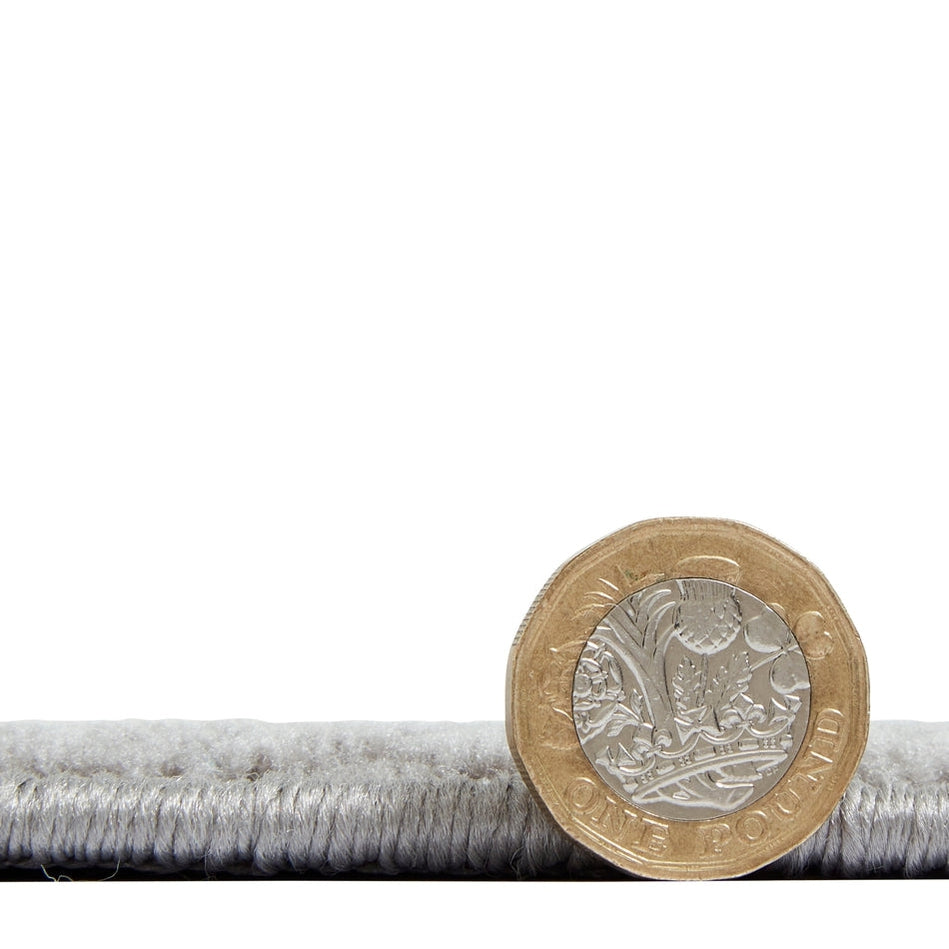 Silver Shimmer – Adding a delicate reflective sheen, amplifying the rug’s soft metallic finish.