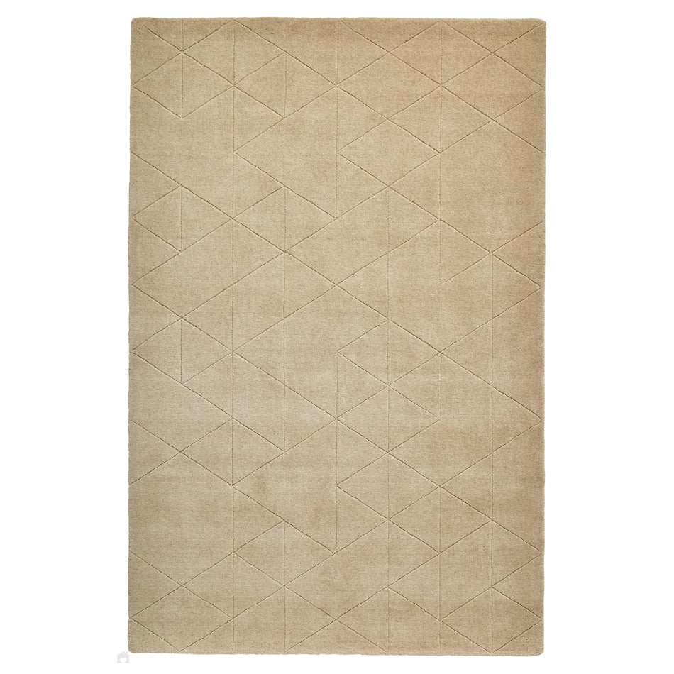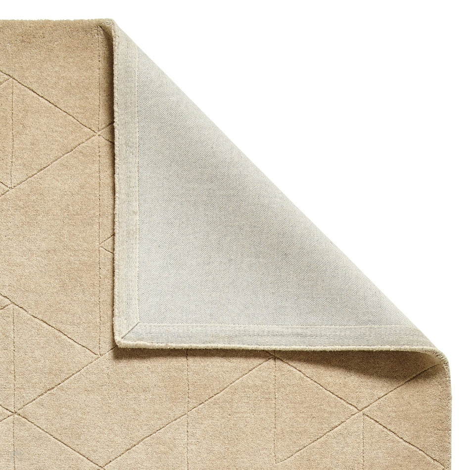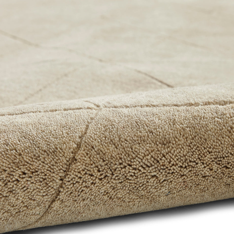 Kasbah KB2025 Modern Plain Geometric Hand-Carved Block Lines Wool Warm Beige Rug
