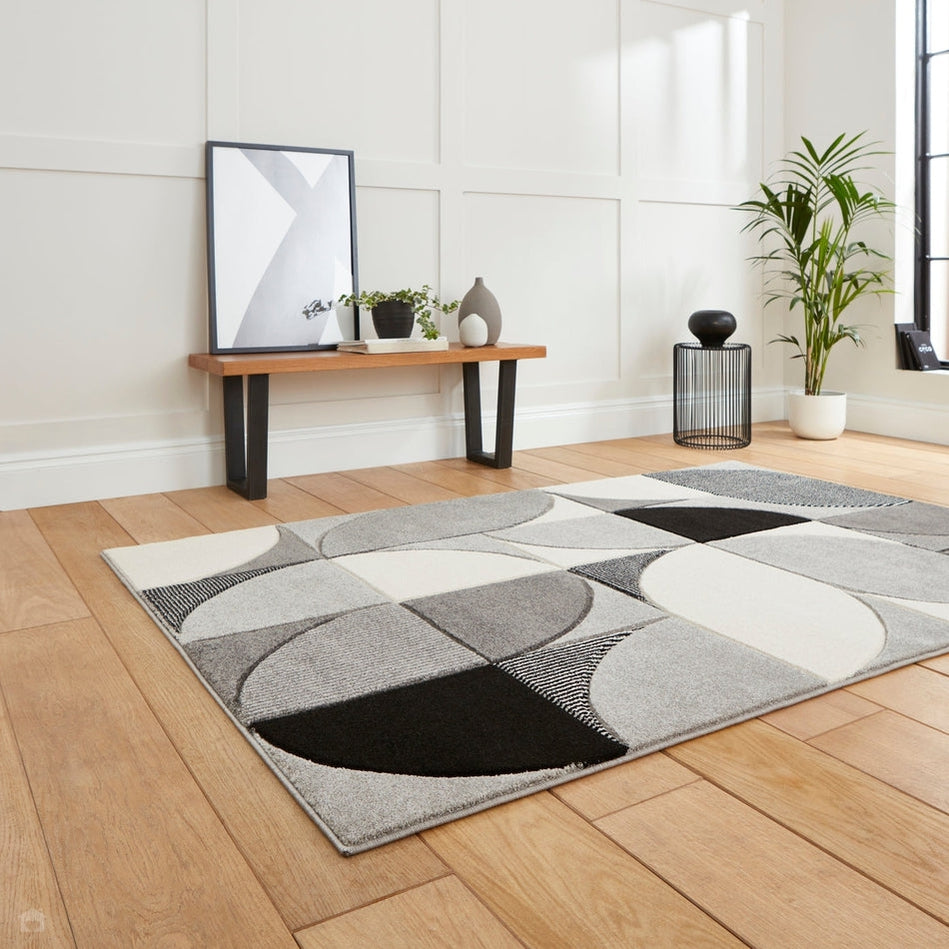 Introducing the Matrix MT63 Cream/Grey/Black Modern Geometric Carved Rug — a bold and contemporary statement piece that brings together striking contrast, textural depth, and modern sophistication. Its unique composition of curved and angular shapes forms a clean, architectural pattern that feels both timeless and stylish. Crafted in Turkey from high-density heat-set polypropylene, it offers a plush feel, exceptional durability, and easy maintenance, making it ideal for busy, design-conscious homes.