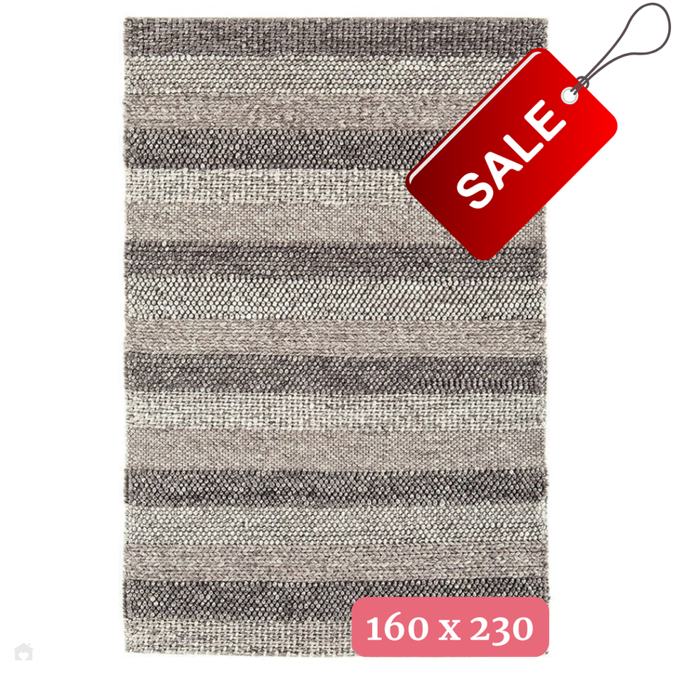 Katherine Carnaby Coast CS08 Modern Designer Plain Varied Stripe Hand-Woven Textured Wool&Viscose Flatweave Taupe Brown Rug 160 x 230 cm