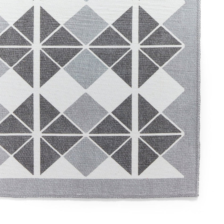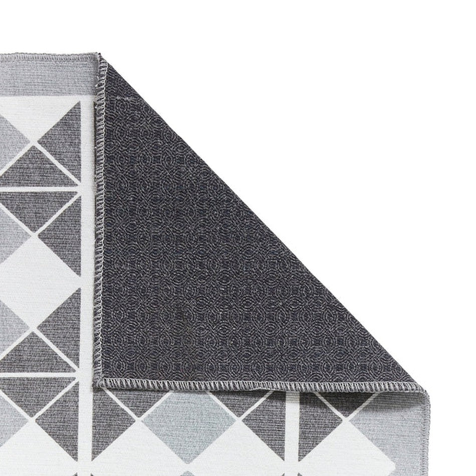 The Washable Victoria H1184 Grey/Dark Grey Rug merges modern geometric style with vintage-inspired charm, featuring a striking diamond grid and triangular tessellation pattern that brings depth and structure to contemporary interiors. Crafted from mixed recycled polyester in a digitally printed flatweave, it delivers sharp detailing with a smooth, flatweave finish while promoting the use of sustainable materials. Made in Turkey using advanced digital printing technology, this rug balances design precision with everyday practicality. With its 0.2cm slim pile height, it sits seamlessly under furniture, making it an excellent choice for high-traffic and multifunctional spaces. The integrated anti-slip backing enhances safety, stability, and adds an extra layer of practicality for everyday use.