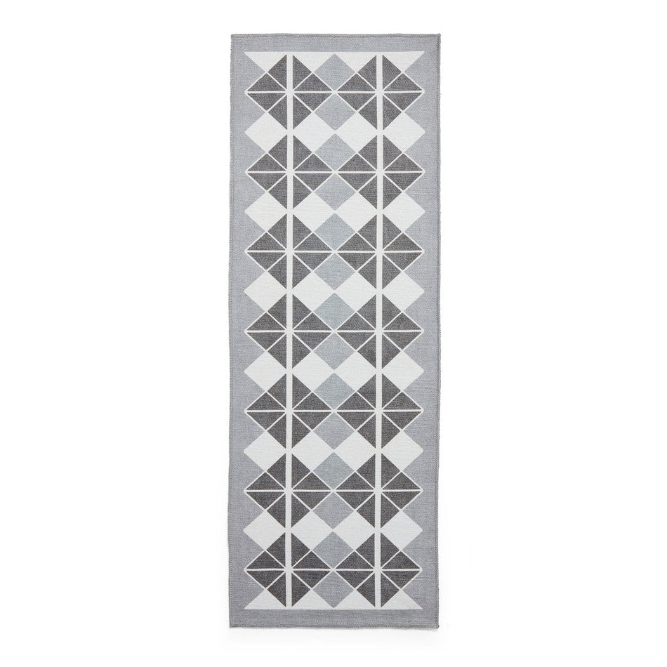 The Washable Victoria H1184 Grey/Dark Grey Rug combines Dark Charcoal Grey, Mid Grey, Silver Grey, and Ivory in a modern tessellated diamond layout that bridges vintage artistry with modern minimalism. Its flatweave, low-profile construction ensures a clean and contemporary aesthetic, while digitally printed detailing captures every fine geometric element with clarity. Made in Turkey from mixed recycled polyester, this lightweight and fully washable rug is both sustainable and practical, offering a stylish, eco-conscious solution for hallways, kitchens, and open-plan spaces. With its 0.2cm slim profile and anti-slip backing, it combines timeless design with modern functionality.