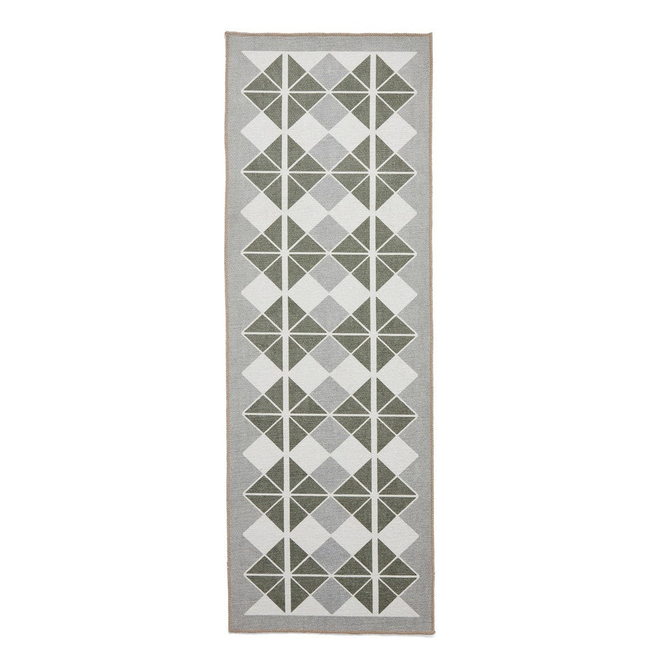 The Washable Victoria H1184 Grey/Green Rug combines Olive Green, Grey-Green, Soft Grey, and Ivory tones in a refined tessellated diamond arrangement that merges vintage charm with modern minimalism. Its flatweave, low-profile construction ensures a clean and versatile finish, while digitally printed detailing captures each geometric form with precision. Made in Turkey from mixed recycled polyester, this lightweight and fully washable rug unites sustainable craftsmanship with timeless appeal. Perfect for kitchens, hallways, and contemporary living spaces, its 0.2cm slim profile and anti-slip backing make it a stylish, eco-conscious, and practical choice for everyday living.