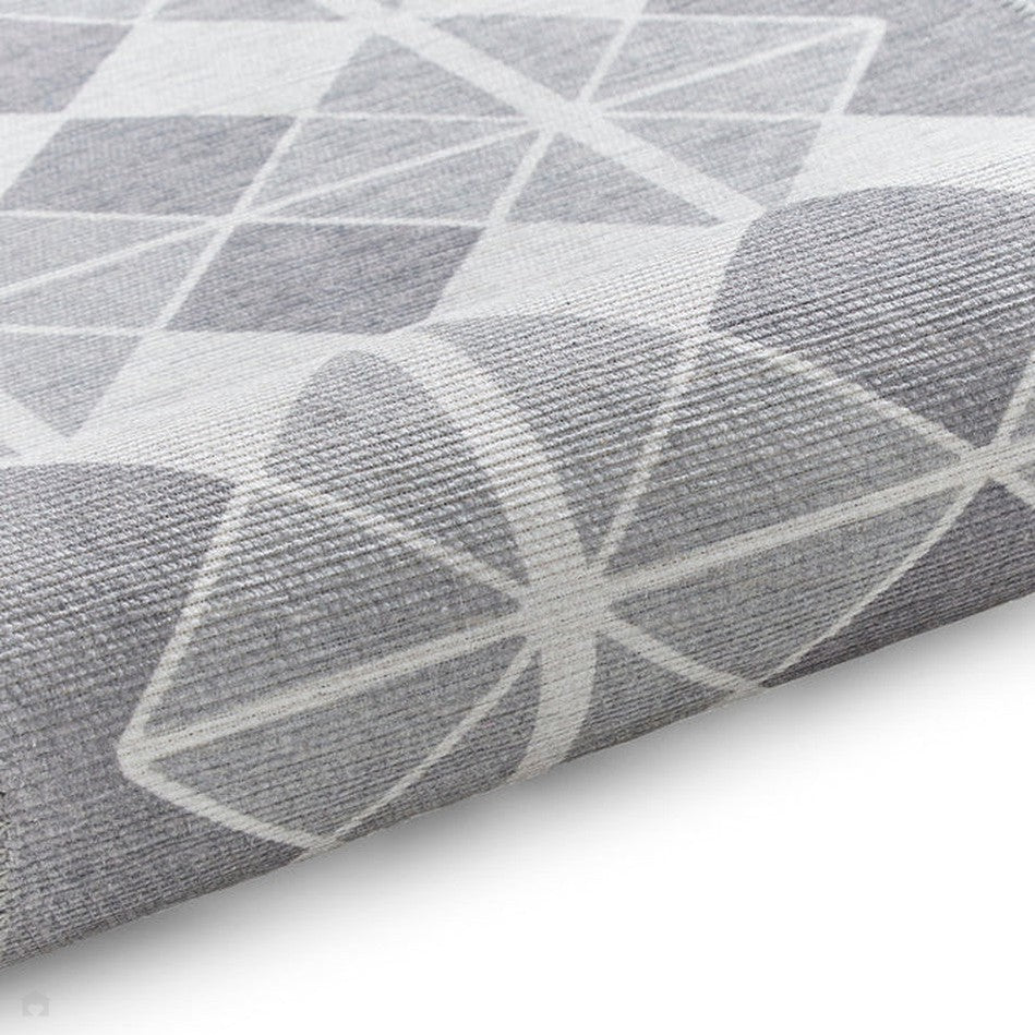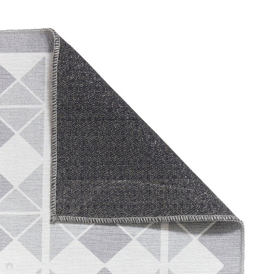 The Washable Victoria H1184 Grey/Light Grey Rug offers a refined interpretation of the modern vintage aesthetic, combining crisp geometric structure with a calm, neutral palette. Featuring a diamond grid and triangular tessellation pattern, this design delivers understated sophistication suited to both contemporary and classic interiors. Crafted from mixed recycled polyester in a digitally printed flatweave, it provides clean detail and a smooth, low-profile finish while embracing sustainable materials. Made in Turkey using advanced digital printing technology, this rug combines precision craftsmanship with easy-care practicality. With its 0.2cm slim pile height, it sits perfectly beneath furniture and works beautifully in high-traffic or multifunctional spaces. The integrated anti-slip backing enhances safety, stability, and adds an extra layer of practicality for everyday use.