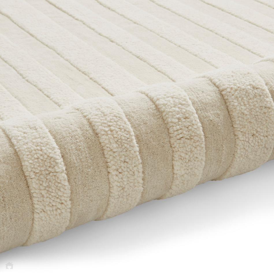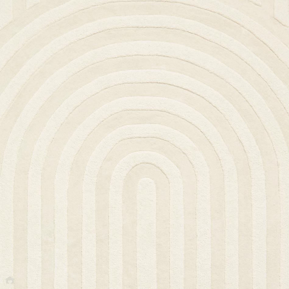 The Hudson Bay 24137 Ivory Wool Rug exudes modern serenity through its graceful arched-line motif, hand-carved into a luxuriously smooth wool surface. The pattern radiates from the centre in a series of symmetrical curved bands, forming a subtle yet striking sculptural design that plays beautifully with light and shadow. Unlike other textured variants in the range, this rug features a smoother cut-pile base with hand-carved recessed detailing, creating depth and contour while maintaining a refined, velvety finish.