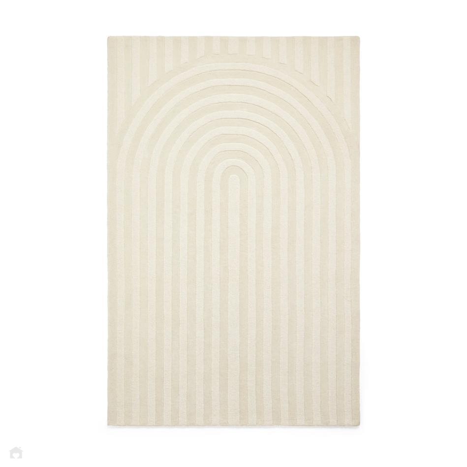 The Hudson Bay 24137 Ivory Wool Rug showcases Ivory, Warm Cream, and Off-White tones arranged in a hand-carved arch pattern across a smooth, dense cut-pile surface. Crafted from 100% wool and hand-tufted in India, it features a 2cm high-density pile that is soft, warm, and naturally resilient. With its refined carved detailing and minimal tonal palette, this rug introduces depth, calm, and architectural elegance to living rooms, bedrooms, and serene modern interiors.