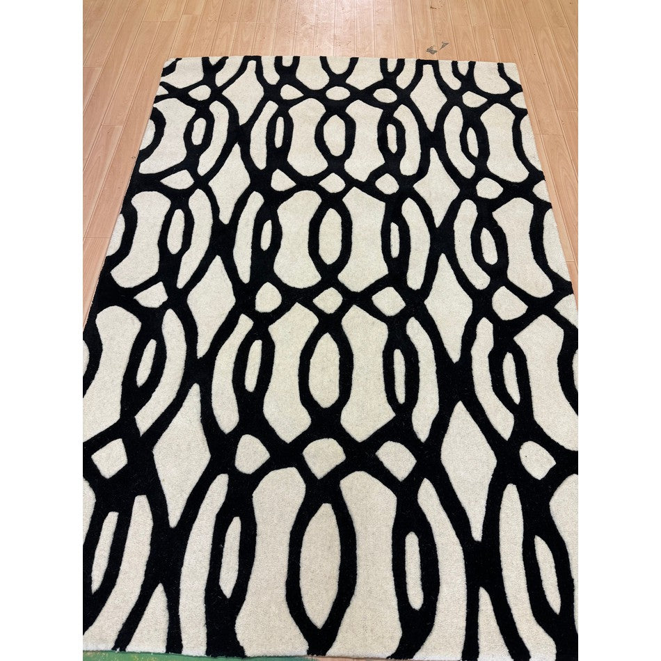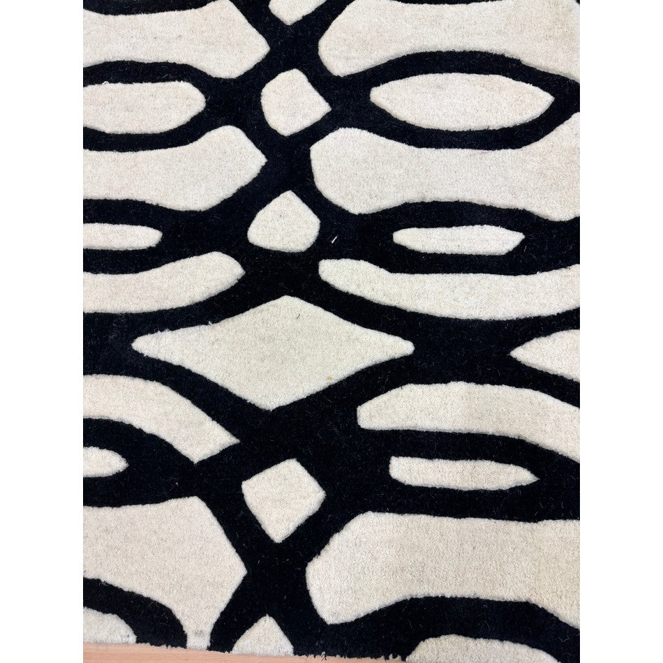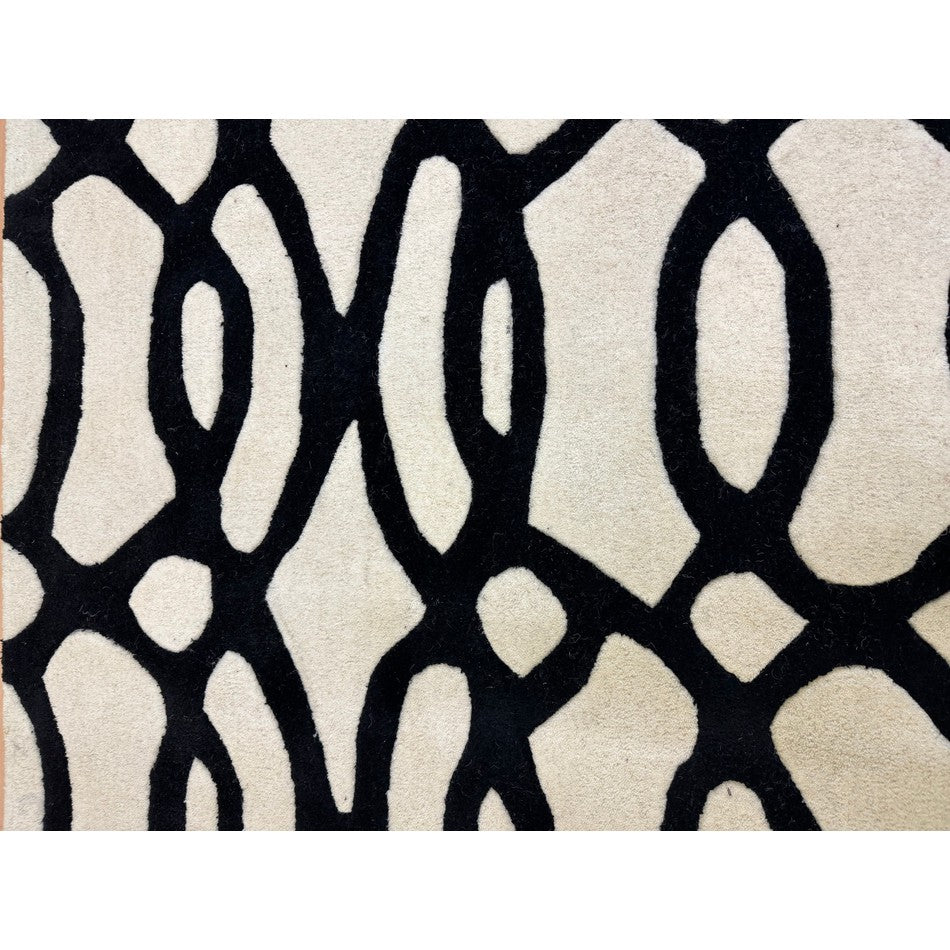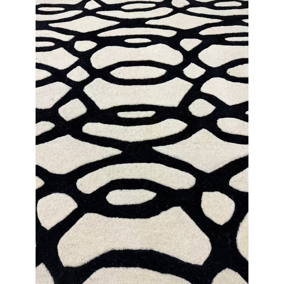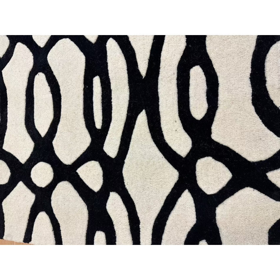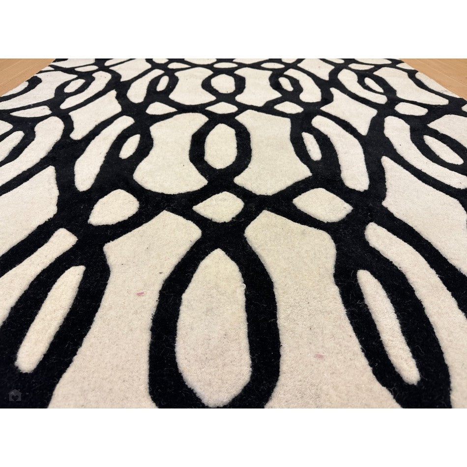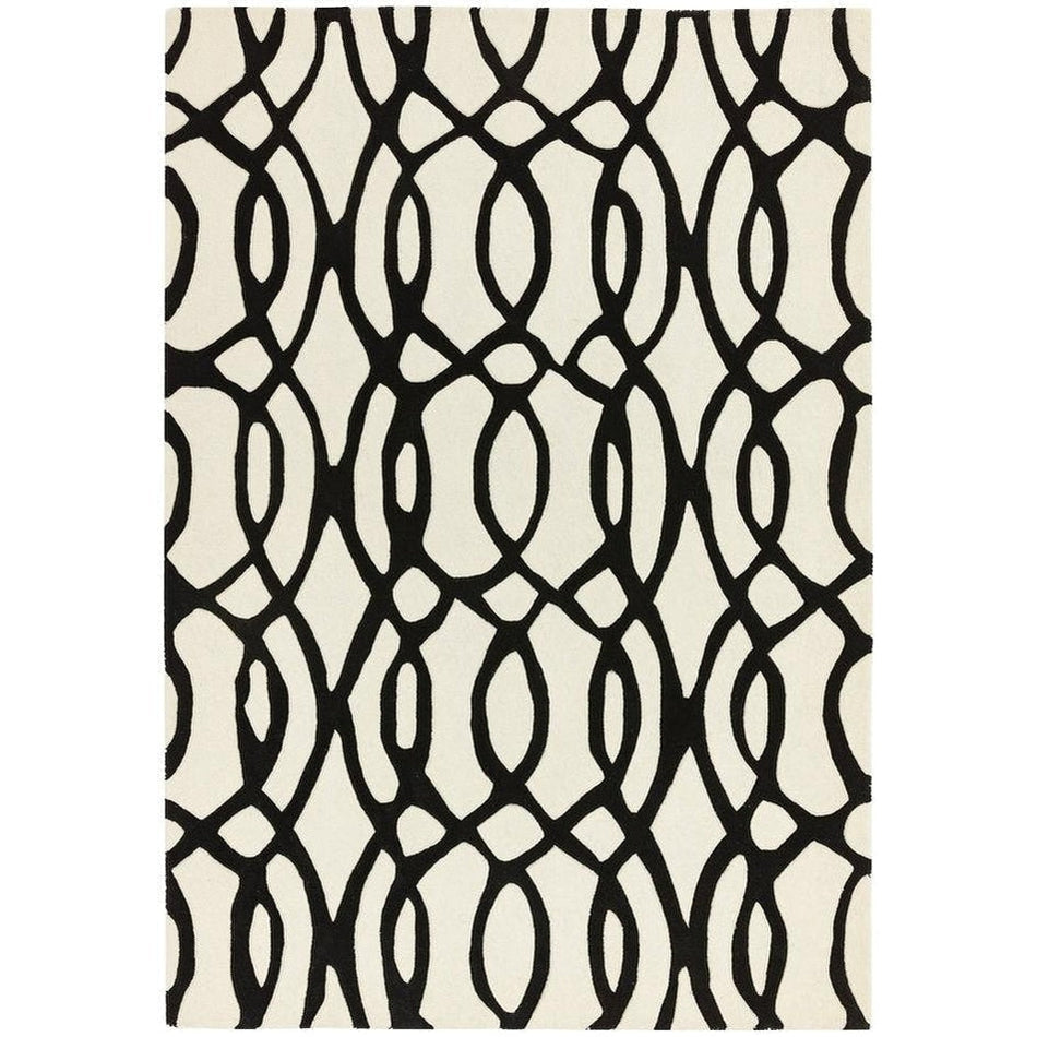 The Matrix MAX35 Wire Modern Geometric White/Black Rug showcases the bold sophistication of monochrome design, where fluid organic lines meet architectural precision. Its intricate black lattice pattern flows dynamically across a crisp white base, creating a visually captivating interplay of movement, contrast, and rhythm.