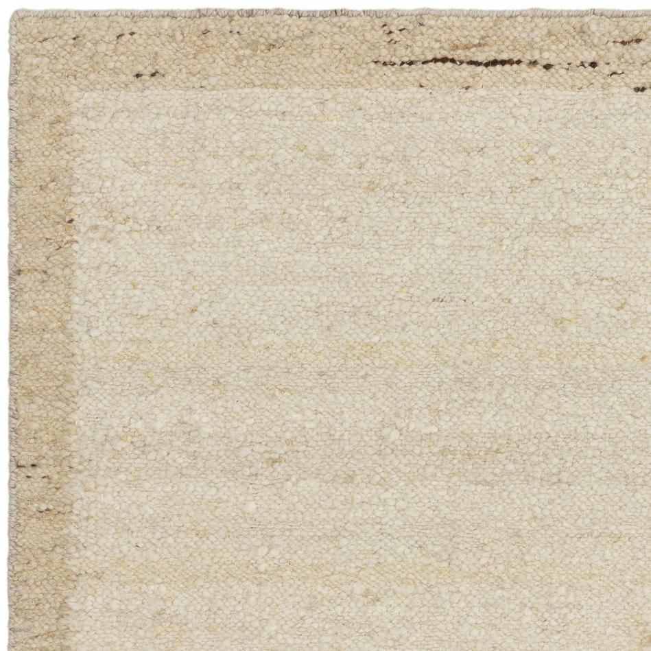 Crafted in India from 93% hand-spun wool and 7% cotton, the Napa Border Rug embodies understated sophistication through its minimalist design and artisanal craftsmanship. Hand-woven by skilled artisans, it highlights the beauty of natural, undyed wool with a soft, looped weave texture that adds warmth and tactility underfoot. The design features a simple tonal field framed by a contrasting Sandstone border, offering a sense of structure while preserving an organic, handcrafted feel. The low 10 mm pile maintains a refined, contemporary look, while the unbacked finish allows the natural flexibility of the weave to show through. Each piece carries subtle variations that celebrate its handmade origin and natural fibre composition.