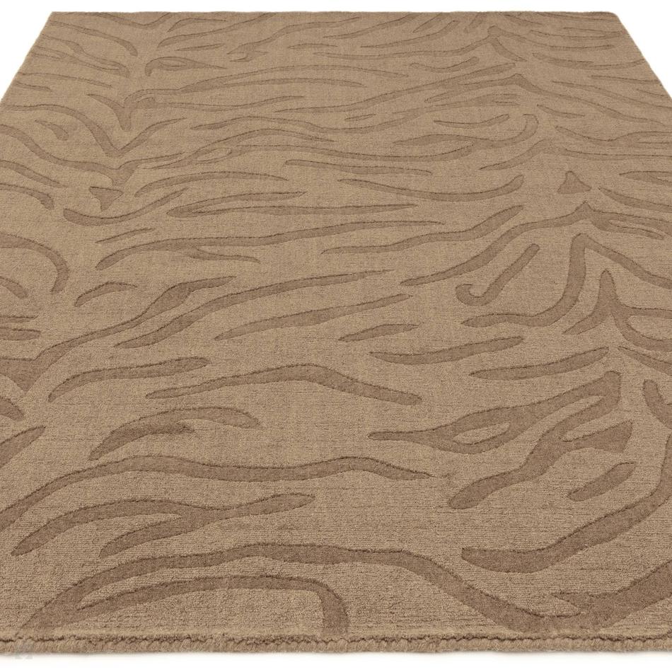 Hand-woven in India from 100% wool, the Tigra Mocha Wool Rug presents a sophisticated modern twist on animal-inspired design, balancing natural warmth with subtle texture. Crafted using a cut and loop pile construction, this version features a looped ribbed pattern raised above a smooth cut pile base, giving it a refined high-low finish that plays gently with light and shadow. With an 8mm low-profile pile and 2kg per m² wool weight, it delivers a perfect mix of softness, structure, and durability — ideal for everyday spaces with a natural, earthy palette. While the Tigra Spice Wool Rug features a deeper carved cut-pile pattern raised above a ribbed loop background for stronger contrast and definition, the Tigra Sand and Tigra Mocha versions reverse this effect, using a looped ribbed pattern over a smoother cut-pile base to create a softer, more understated texture.