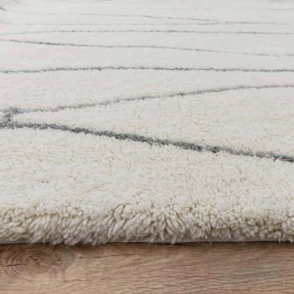 The Washable Azera Berber Lineal Cream Wool Rug draws inspiration from authentic Moroccan Berber design, blending artisanal texture with modern functionality. Hand woven in India from 100% undyed wool, it features a 25mm plush mid-height shaggy pile that feels exceptionally soft underfoot. Despite its natural wool composition, this rug is machine washable, making it a rare combination of luxury and practicality. The subtle vertical linear pattern in contrasting tones adds gentle definition to the creamy wool base, offering a relaxed, organic aesthetic ideal for modern, Scandinavian, and bohemian interiors.