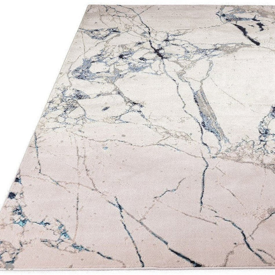 The Aurora AU22 Quake Rug channels the raw beauty of natural stone fractures with a dramatic marbled abstract design. A bold combination of Cream, Navy Blue, Blue Grey, Charcoal, Silver, Light Beige, and Pale Blue creates striking contrast and layered depth, enhanced by shimmering metallic highlights. With its smooth, low-profile cut pile, this rug captures both artistry and practicality, making it an ideal choice for living rooms, dining rooms, and bedrooms seeking a bold focal point.
