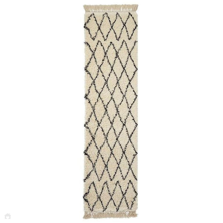Boho 8280 Modern Moroccan Berber Soft Plush Shaggy White/Black Runner 060 x 230 cm