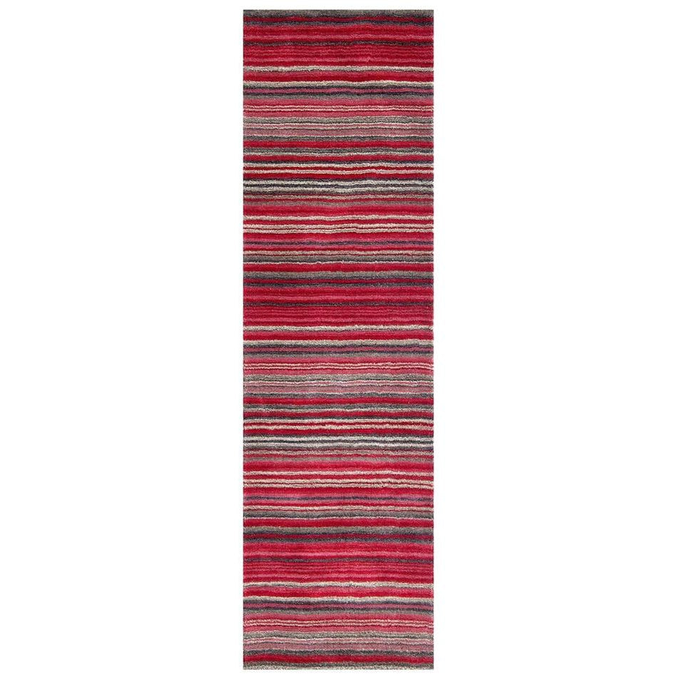 Introducing the Carter Modern Stripe Wool Rug in Red/Grey/Beige