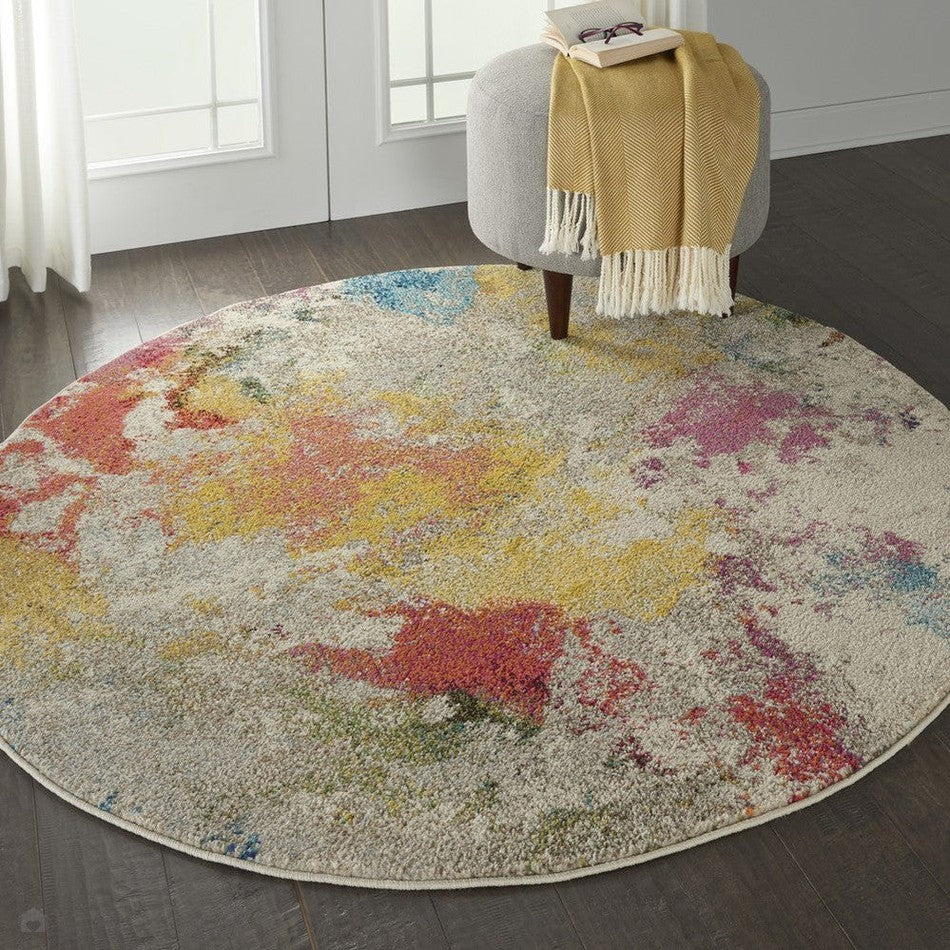 The Celestial CES12 Multicolour Round Rug by Nourison mirrors the expressive beauty of a painted canvas, splashed with a lively spectrum of shades across a soft ivory base. Crafted in Turkey from 100% polypropylene with a jute backing, it features a durable 9mm low-profile short cut pile that is both low-shedding and easy to maintain. As part of the budget-friendly Celestial range, this rug brings modern artistry and casual comfort to everyday interiors. Celestial is a budget quality and price range with a durable low-profile short pile.