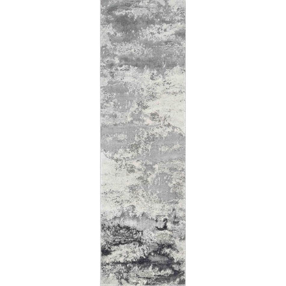 The Emperor 310 Onyx EMP10 Silver Runner showcases a flowing abstract marbled design with layered tonal effects and a soft metallic sheen that subtly shifts with the light. The pattern blends smooth transitions and distressed textures, creating a sense of movement, depth, and contemporary elegance. Its hi-low textured 12 mm pile adds tactile dimension, enhancing the sculptural look and providing a soft, luxurious feel underfoot.