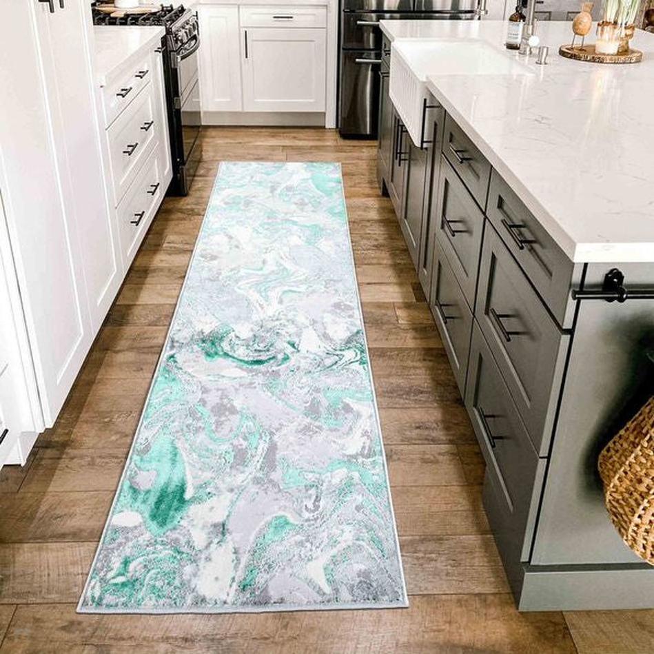 The Emperor 315 Solarius EMP15 Aqua Runner brings a luxurious, contemporary statement to the home with its layered marbled design and soft metallic sheen that shifts gently with the light. The abstract pattern features fluid streaks, weathered textures, and stone-like veining, creating a sense of depth and natural movement across the surface. This expressive visual effect is enhanced by a textured hi-low pile, giving the rug a tactile, sculptural dimension that feels both modern and refined. Expertly machine-woven in Turkey from a blend of polypropylene and polyester, the rug offers a super-soft 12 mm pile that feels plush underfoot while remaining durable, non-shedding, and practical for everyday living. The light-reactive fibres allow the rug to appear lighter or darker from different angles, adding an elegant and atmospheric finish to any room. Ideal for living rooms, bedrooms, and open-plan interiors, the Emperor Solarius Rug provides a perfect balance of comfort, style, and bold modern character.