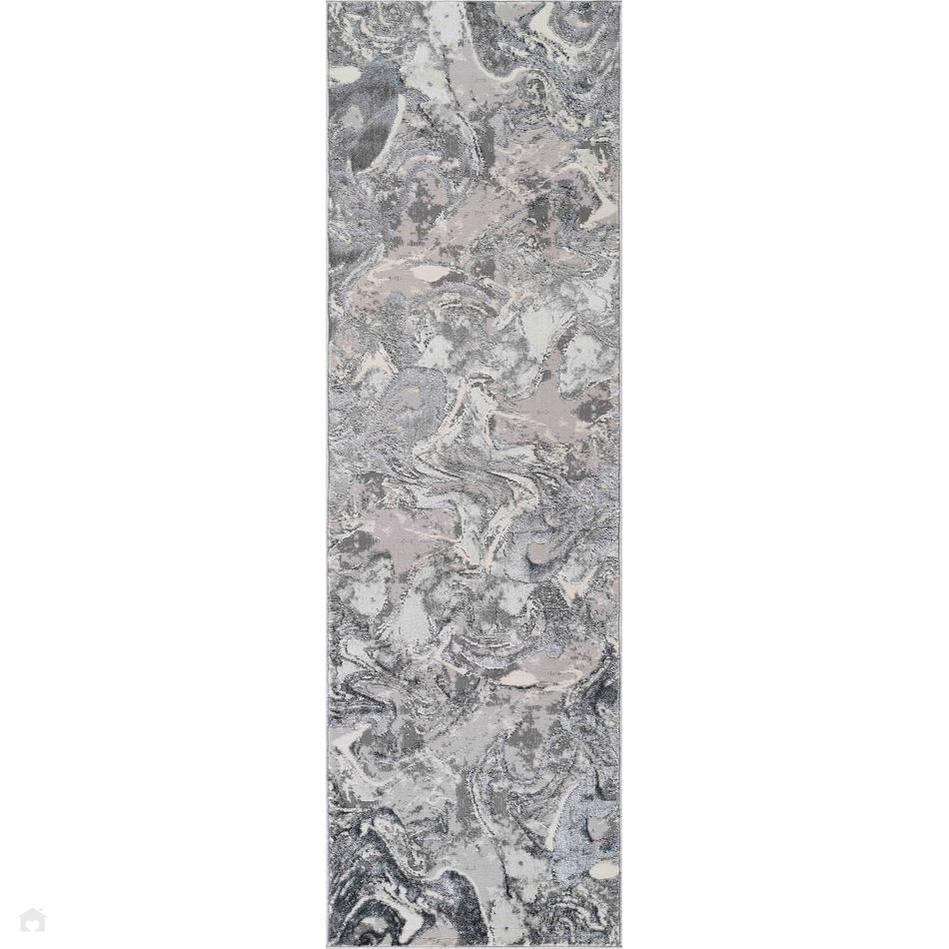 The Emperor 315 Solarius EMP15 Silver Runner makes a luxurious, contemporary statement with its layered marbled design, metallic shimmer, and dynamic abstract movement that shifts beautifully with the light. The pattern features fluid streaking, weathered stone-like veining, and softly distressed textures, creating natural depth and a sense of flowing motion across the surface. This expressive visual effect is enhanced by a textured hi-low 12 mm pile, giving the rug a sculptural, dimensional feel that looks refined while remaining incredibly soft underfoot. Expertly machine-woven in Turkey from a durable polypropylene and polyester blend, the rug offers a super-soft, non-shedding pile that is practical for everyday living while maintaining a high-end finish. The light-reactive fibres subtly shift tone depending on angle and lighting, allowing the Silver Solarius design to appear lighter, darker, cooler, or warmer throughout the day — adding an atmospheric and elegant quality to your space. Perfect for living rooms, bedrooms, hallways, and open-plan modern interiors, the Emperor Solarius Silver Rug balances its cool palette with rich texture and shimmering highlights, creating a sophisticated contemporary centrepiece that complements both minimal and decorative décor.